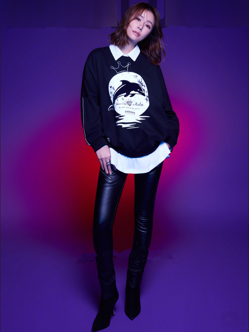 If you feel that a hooded sweatshirt is not stylish enough, then choose a round-neck sweatshirt. The round-neck sweatshirt has a simple and neat shape, and it won’t feel bulky when worn as an inner layer. However, because the style of this type of sweatshirt is too ordinary, you need to spend a little more thought on the matching. Ruby Lin’s look is a good example for us. A round-neck sweater paired with a romantic and beautiful gauze skirt makes the look more girlish and doubles the age-reducing effect.