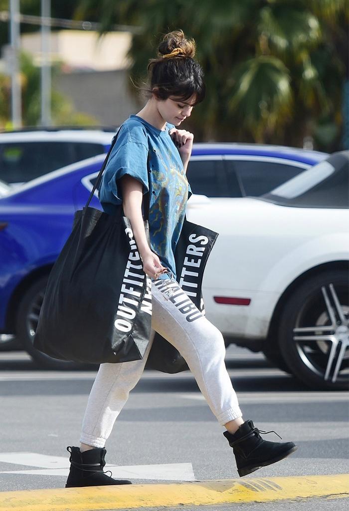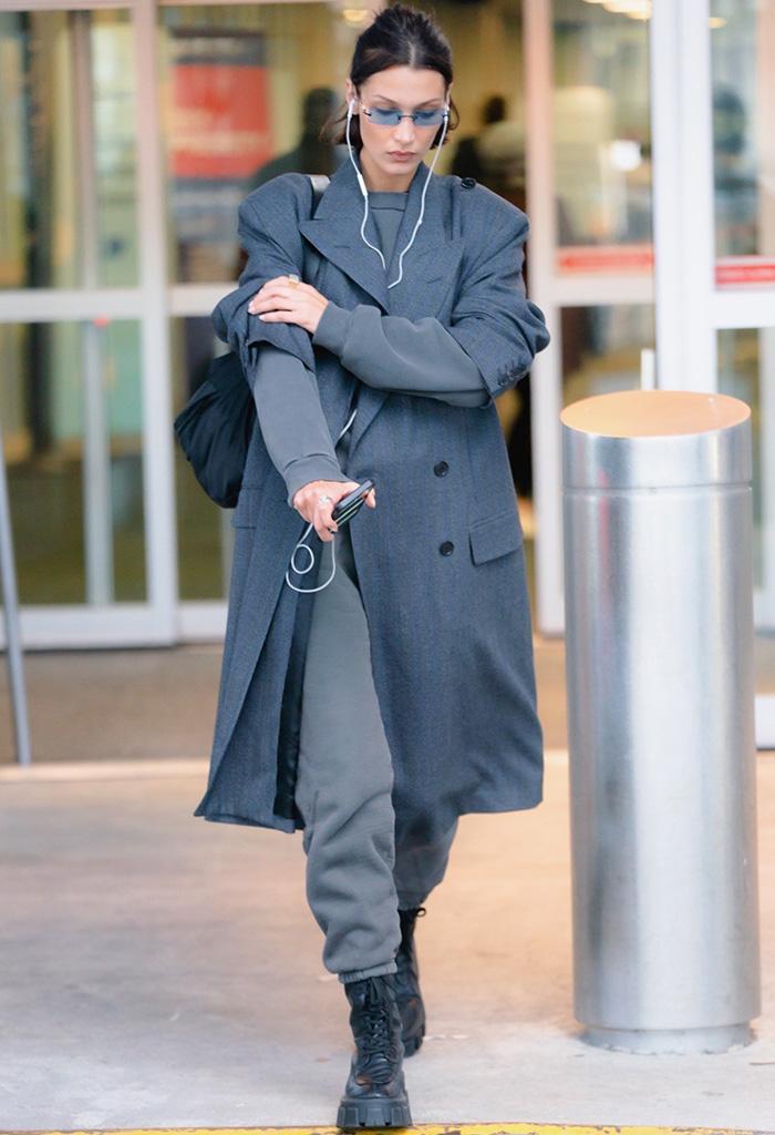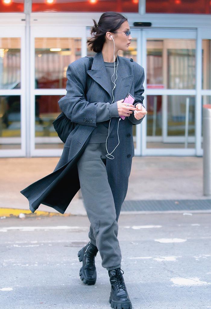 In addition, ankle-tied sweatpants are also more versatile when paired with shoes, such as more everyday sports shoes and canvas shoes. Next, you can also choose high-top Martin boots or short boots to highlight the look. The drawstring design can tuck the trousers into the shoes. Even if paired with an ordinary T-shirt or jacket, you can instantly become a fashionista. For example, Bella wears sweatpants with a pair of black leather boots. The combination of gray and black makes it even more cool and elegant.