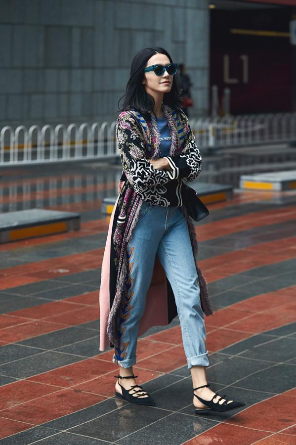 No matter how the trends change, there are always some classic items that will never go out of style, such as jeans. Because of this, it will become more difficult to wear classic items with new ideas. If the matching skills are not enough, girls can choose more avant-garde styles. Yao Chen’s jeans combine printing elements. The light color is not eye-catching, and a forty-year-old woman can easily control it, which inadvertently enhances the sophistication.
