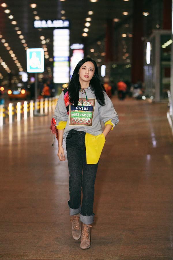 Versatile items are usually comfortable and skin-friendly, but they have the disadvantage of not being fashionable enough. Girls can add them through methods such as “layering” Fashion index. “Stacking” can not only add layering to the look, but also make it easier to cope with changes in temperature. Yao Chen’s look is an example. She layered a sweatshirt and a shirt. The gray and yellow were bright and dark. The collision effect of the colors was particularly eye-catching. Half of the clothes were exposed, making her look chic and casual.