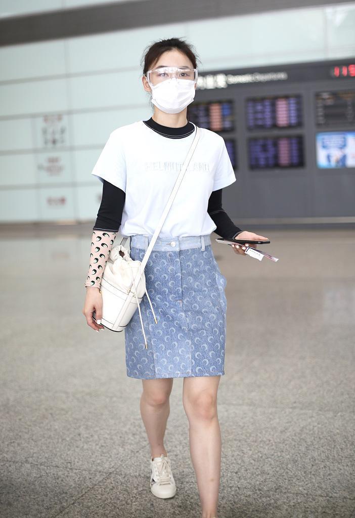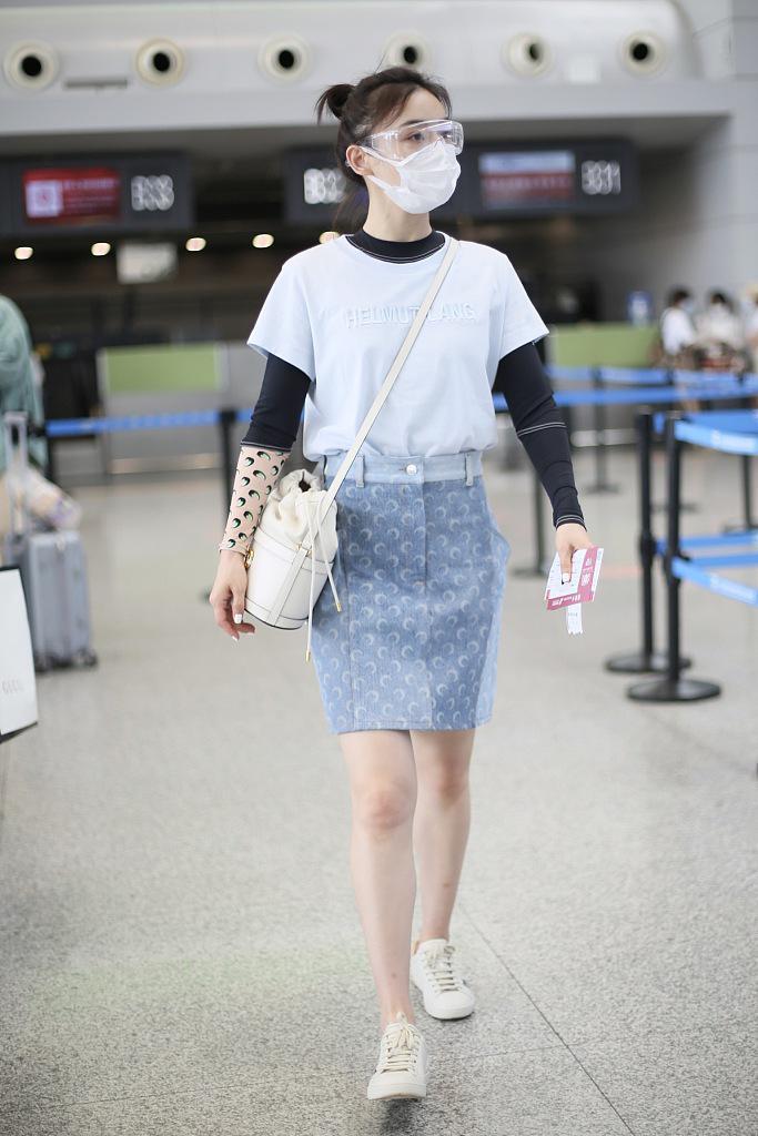 Although wearing underwear outside is very attractive, it is not suitable for daily styling and tends to give people a pretentious and exaggerated look. The look of a dress + T-shirt is more suitable. Really wearable, the sweetness of the dress can just make up for the overly neutral design of the T-shirt, making the look more feminine. Moreover, some dresses are loose in shape, and the waistline is not properly handled, making it easy to wear them in a lower proportion. To create a “dwarf” look, you can knot the hems of stacked T-shirts like Yuan Shanshan, and easily raise the waistline to create a tall look.
