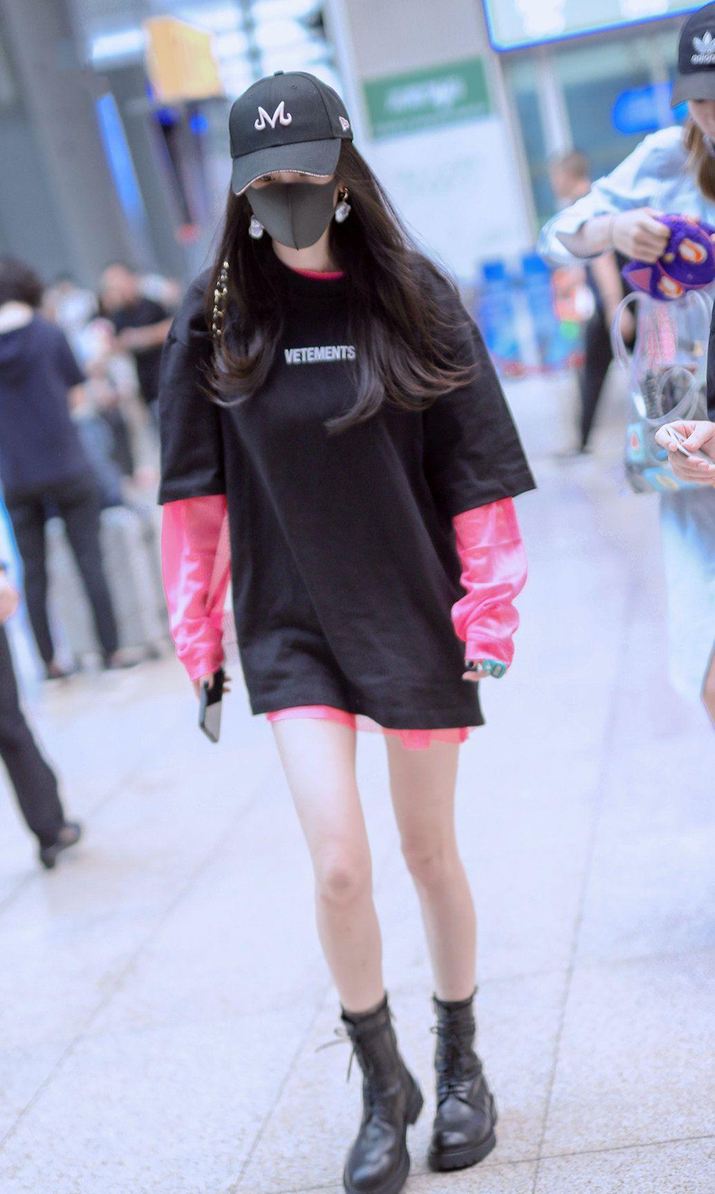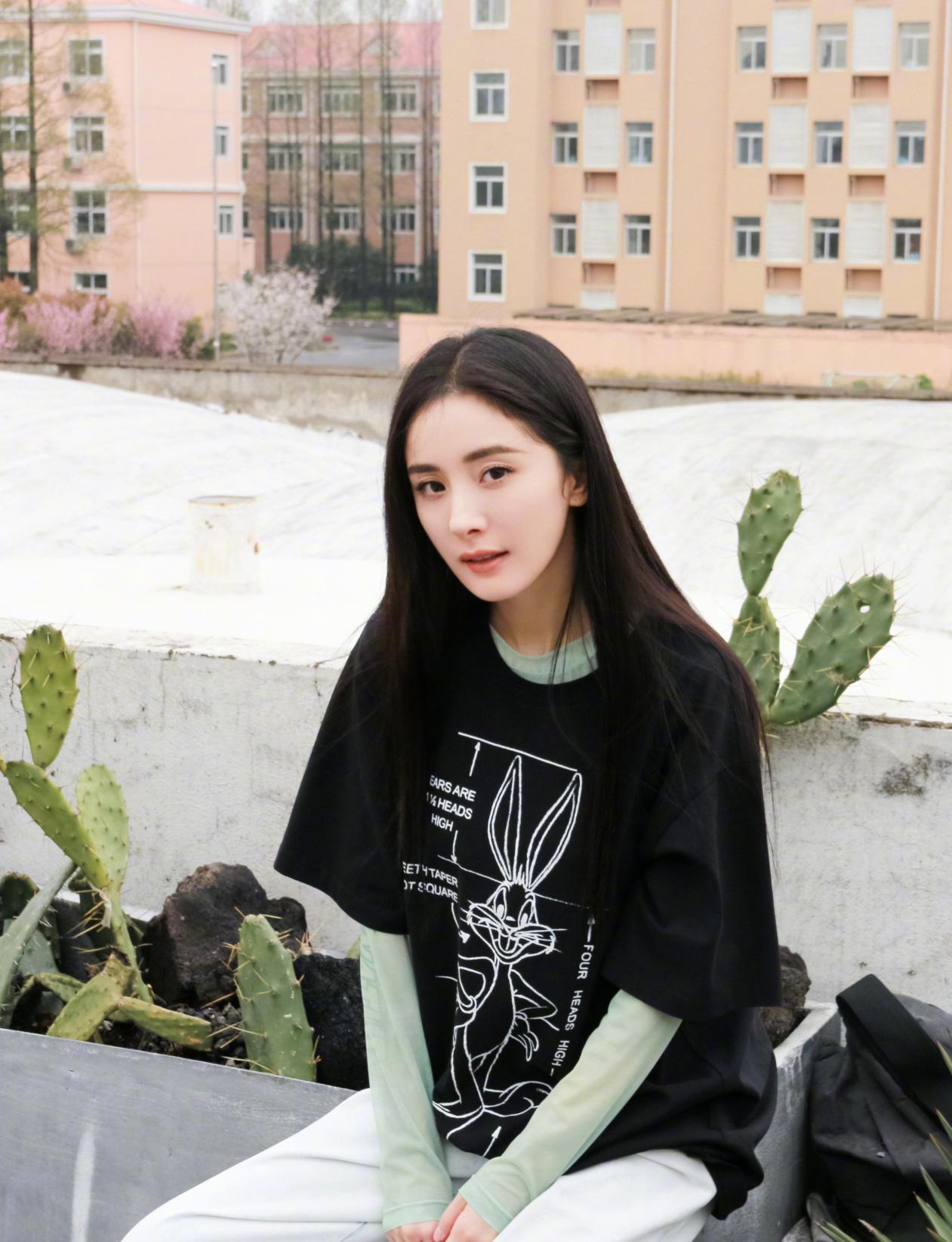 The slimming effect of black T-shirts is always accompanied by a sense of dullness. The style when worn is very dull and boring, and it is easy to make people look more old-fashioned. , if the tailoring design is not excellent, this shortcoming can be solved by layering. For example, adding light-colored items can reduce the dullness and bring a bit of freshness to the look. Black, as one of the basic colors, will add to the rest of the look. The color is very tolerant. Yang Mi wears a black T-shirt with mint green inner wear, which is very refreshing and natural. The fresh and eye-catching color seems to have a cooling effect, making it less stuffy.