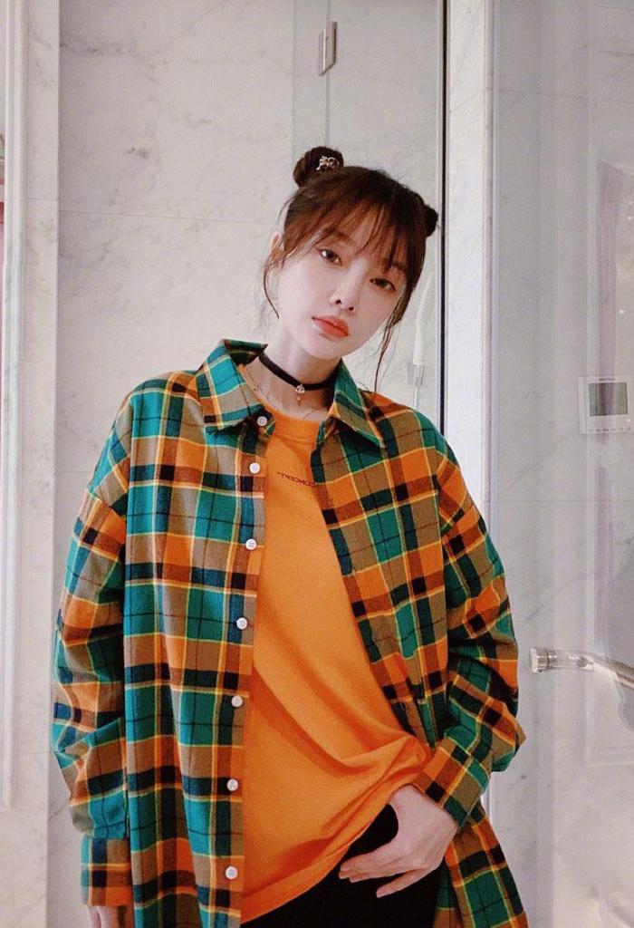 Solid color shirt not eye-catching enough? Then try a plaid shirt. Although this type of item has always been labeled as a “men’s shirt for science and engineering”, in fact, as long as you avoid the old-fashioned and dull plaid colors such as red and black, red and yellow, and blue and black, the choice is more eye-catching and not easy. With the wrong color matching, you can wear a unique and trendy style of printed items. For example, the plaid shirt Li Xiaolu is wearing is a good choice. The collision of orange and green is eye-catching. Paired with a T-shirt of the same orange color, it can avoid the whole outfit from looking gaudy due to too many colors.