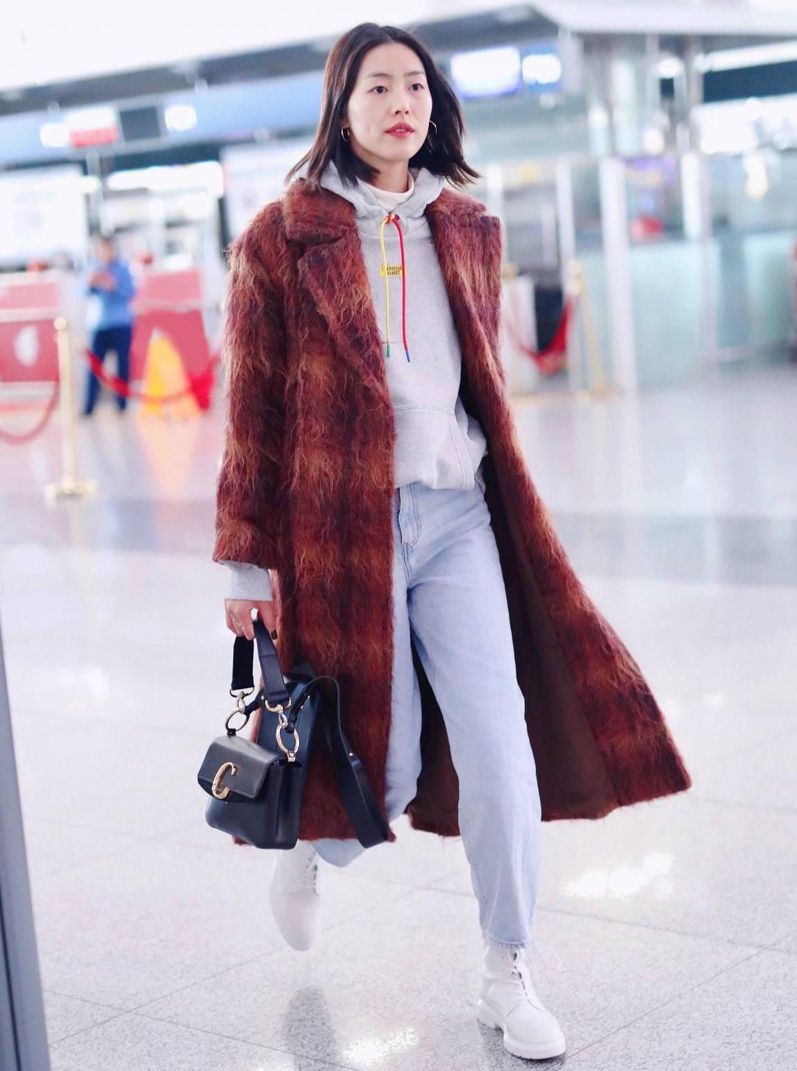 Hooded sweatshirts are very age-friendly, but as an inner wear, you have to consider whether the hood will conflict with the collar of the coat. If you are not confident in your dressing ability, it is recommended to choose a better one. It is not easy to feel inconsistent when matching a round-neck sweatshirt. Especially when the coat is made of plush material, the inner layer should be kept simple and neat. Shen Mengchen’s look is an example of this. A black round-neck sweatshirt + a white plush coat are warm and comfortable. It’s also fashionable, and the black interior just weakens the visual expansion of white, making the look slimmer.