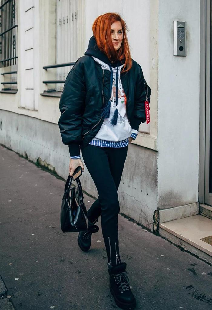 The bomber jacket was first used as the standard “battle uniform” for the Air Force. As designers changed the fabric and style After the revision, it gradually evolved into the current short-cut style. Not only does the upper body look handsome and stylish, but the short length design can also be used to optimize the wearer’s body proportions. It is a perfect match for a sweatshirt.One of the best choices. For example, Dilireba wore a sweatshirt and bomber jacket, paired with bootcut jeans. The overall pure black tone instantly transformed her into a cool girl, and it also had an obvious slimming effect.