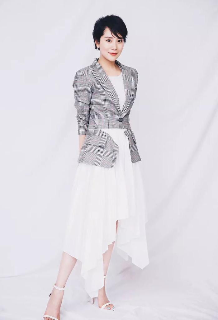 The choice of matching bottoms with suits is not limited to trousers. Girls who like a more feminine look can try it. Pairing a skirt with a suit can use the soft skirt to weaken the neutral characteristics of the suit, bringing a sense of strength and softness, adding a sense of tenderness. Hai Qing wore a plaid suit with a white dress for this look. The light gauze fabric has an elegant atmosphere, which can easily change the style of the suit.It looks beautiful and fairy.