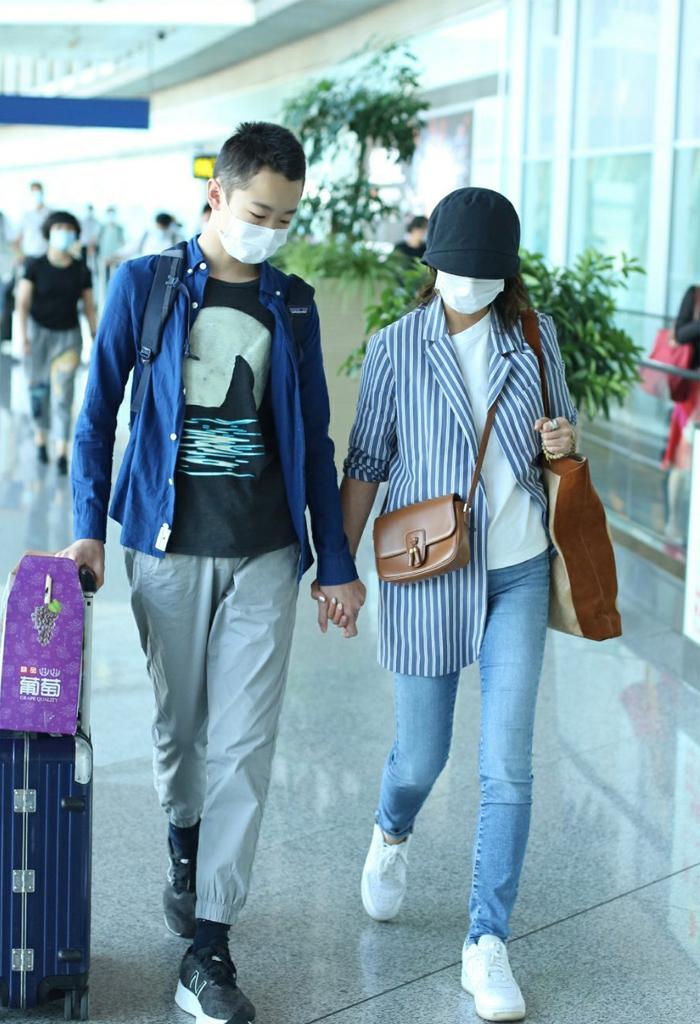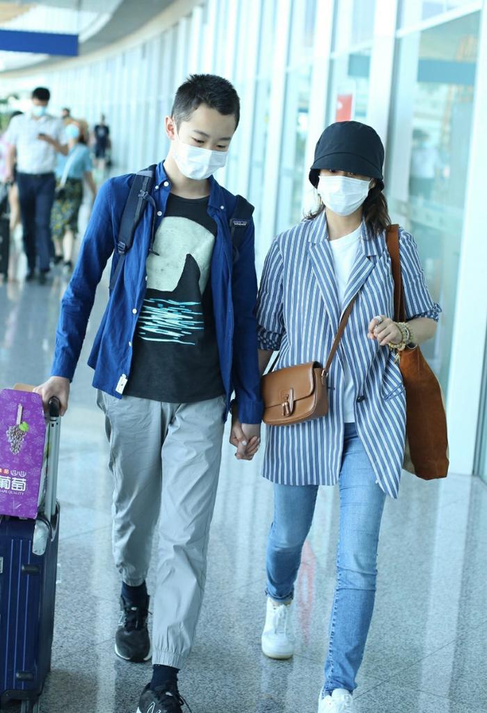 For successful women in their thirties and forties, suits are never missing no matter what season they wear. They can be used to show off when attending formal occasions. It shows a strong aura of a strong woman. If it is used in daily life, it can also be used to create a fashionable and simple look according to different selections and combinations. For example, Hai Qing has a special liking for all kinds of suits. Even in the sultry August, she still wore a striped suit to the airport as usual, paired with a white T-shirt for casual and fashionable looks. Her 14-year-old son is taller than his mother. .