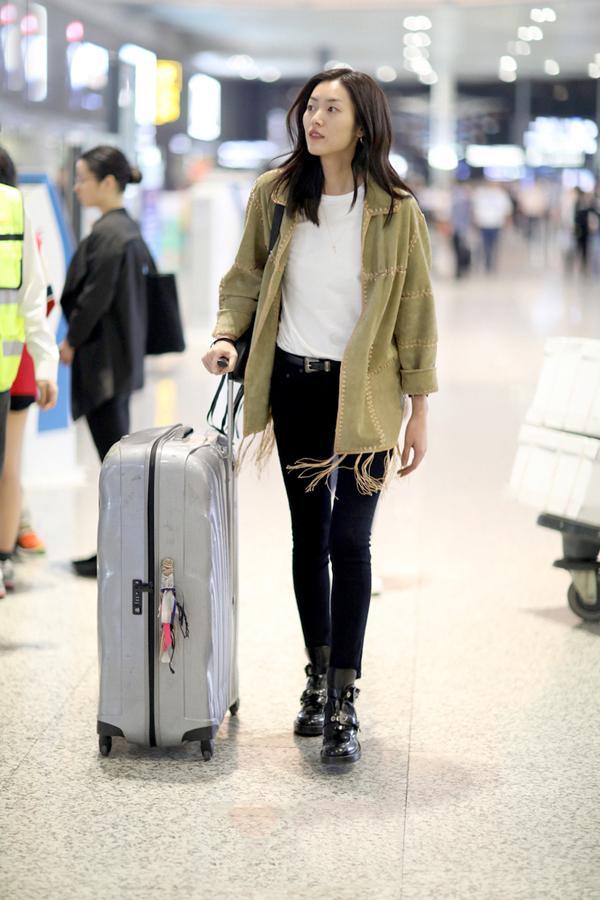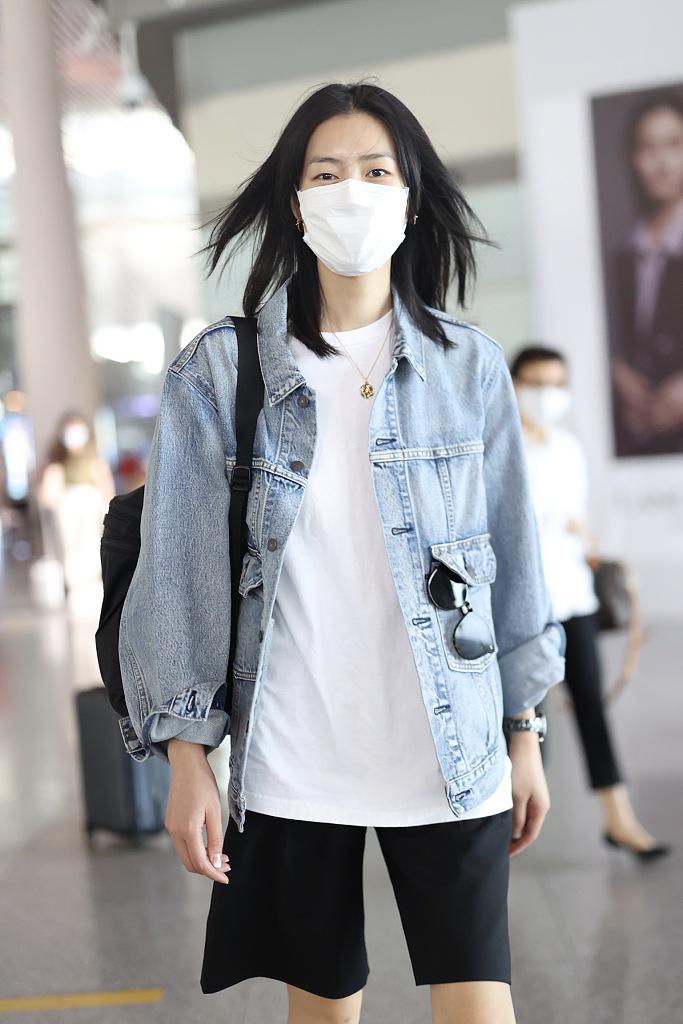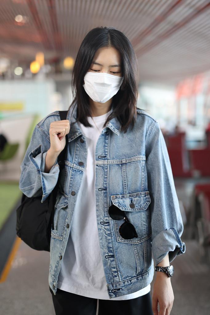 Denim jackets are youthful and age-reducing. The classic and simple style will not be eliminated by fashion no matter how much time goes by. It is an existence that is durable and easy to go out of style. It complements all kinds of inner wear combinations, creating a handsome and trendy look, which can better show the unrestrained and unrestrained side of girls. Since denim fabrics are not very elastic, be careful not to be too slim when choosing styles, and try to leave as much room for inner wear as possible. There is enough space to avoid tightness. Liu Wen wore a denim jacket when walking to the airport this time. The washed denim fabric is refreshing, neat and casual.