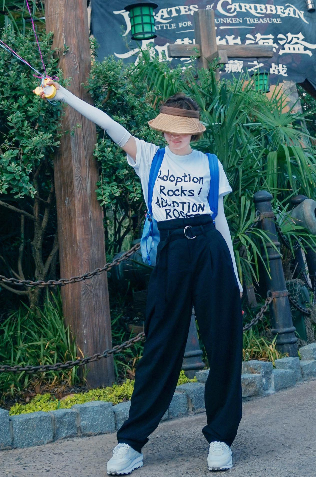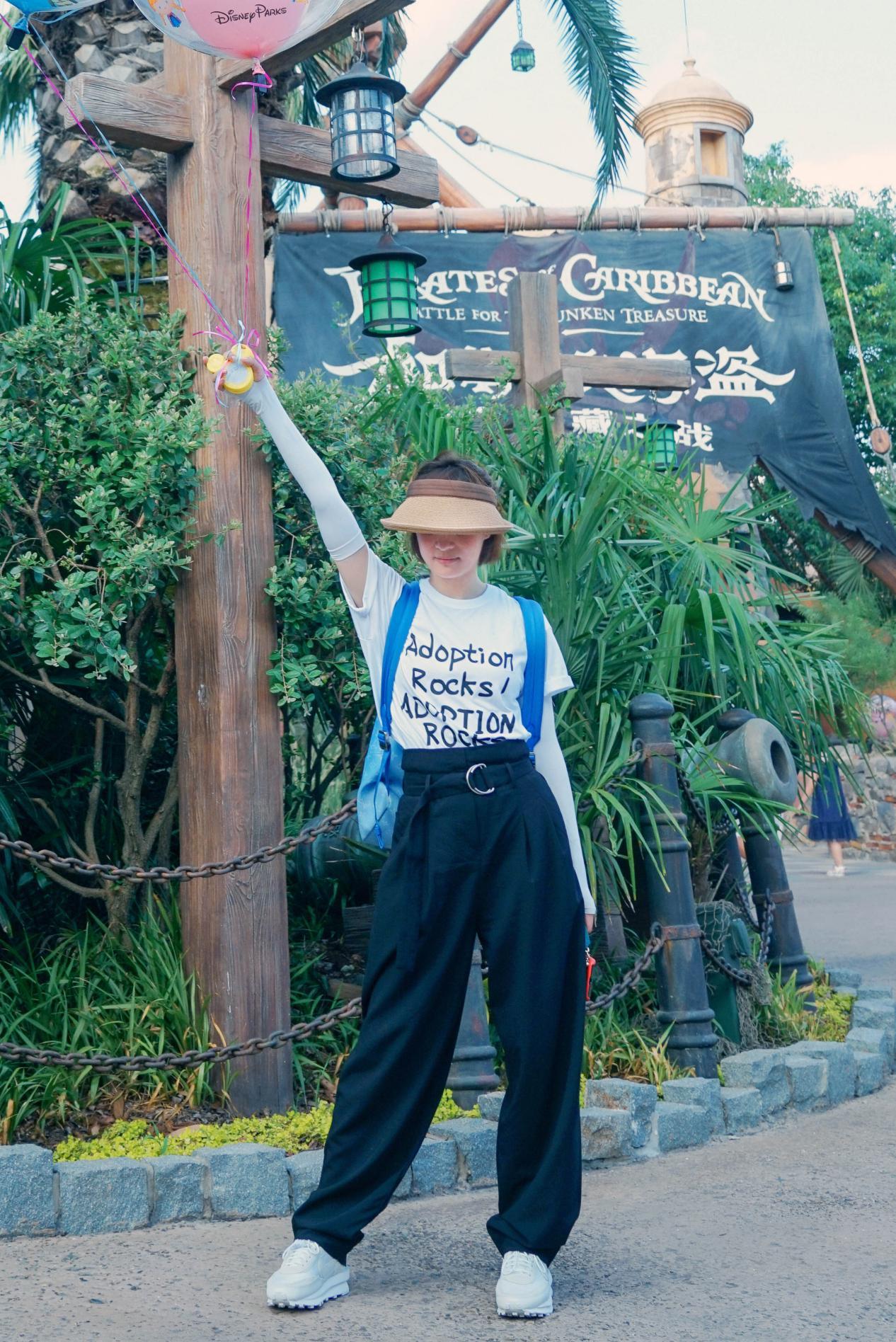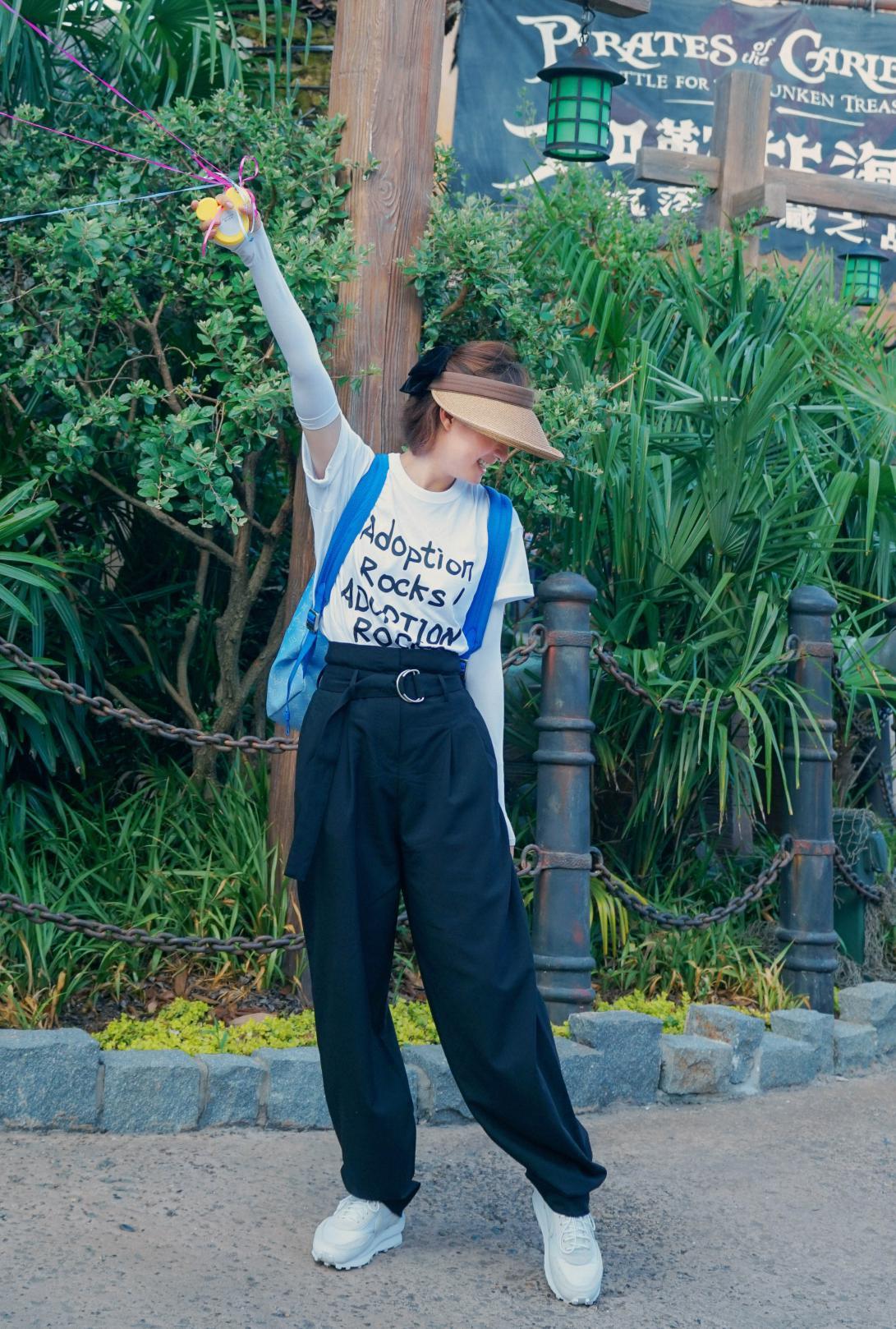Early trousers had a strong professional style, with a slim fit and a sense of restraint. No matter how they were paired with suits and shirts, they looked restrained and dull, and they rarely appeared in other products. Occasions, with the development of fashion, the design of trousers has also been greatly improved, gradually weakening the sense of professionalism and becoming more casual and comfortable. The tops that can be matched are no longer singular, and the styles have become more diverse. Sun Li is very I like black trousers as a single item. This time I paired them with a printed white T-shirt to look refreshing and age-reducing. I am 165cm tall and can wear it to make my legs look longer.