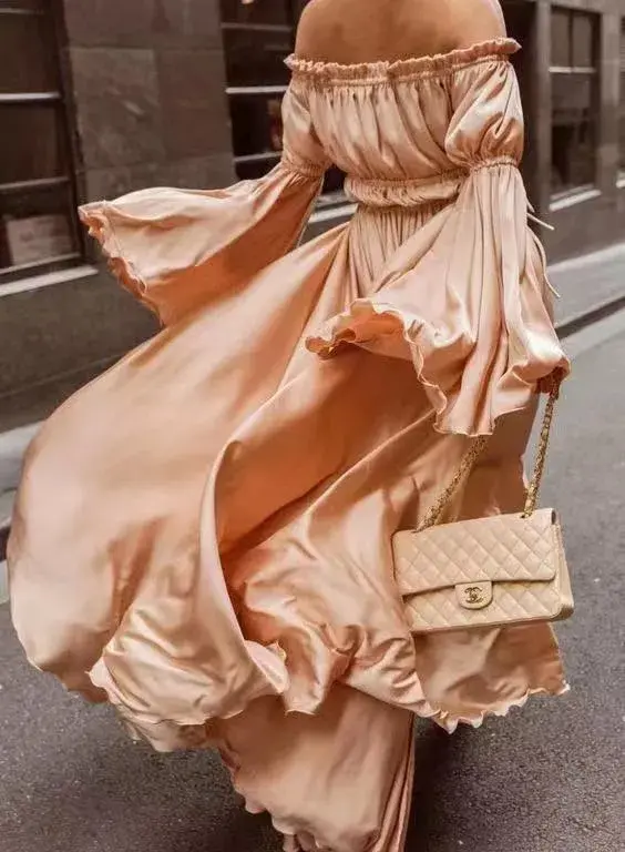 It is characterized by good elasticity, comfort, relatively small shrinkage and unique style. This is not 100% silk, other ingredients are added, the fabric is elastic and the drape is quite good. Since it is a woven fabric, the quality of the material depends on the specific gravity of the silk. The greater the specific gravity of the silk, the more satin-like the feel will be and the more beautiful the luster will be.