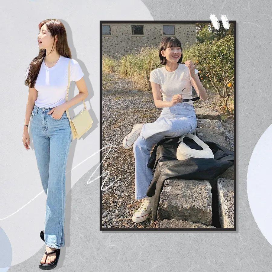 Don’t look at pure white T-shirts, which always give people a plain passerby feeling, but in fact, they are versatile in terms of matching, and can help you easily create something that can be salty, sweet or casual. The style depends on how you match it. A pure white T-shirt is almost a basic item that everyone has. Without any extra color patterns and designs, we can give full play to our imagination and give it more possibilities. The simpler one is naturally the combination of a white T-shirt + light blue jeans. The color scheme is fresh and age-reducing, and it is a casual feeling that will never be absent.