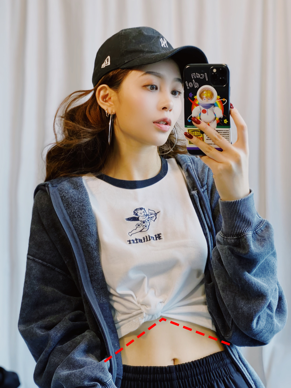In order to be more comfortable and breathable, most of us choose loose T-shirts. At this time, we don’t necessarily have to tuck in the corners of our clothes. It’s already a mess. The best way to wear it! You can learn from the popular girl group knotting method. As shown in the picture above, it is very casual and lazy, and it also shows off your figure and reveals your small waist.