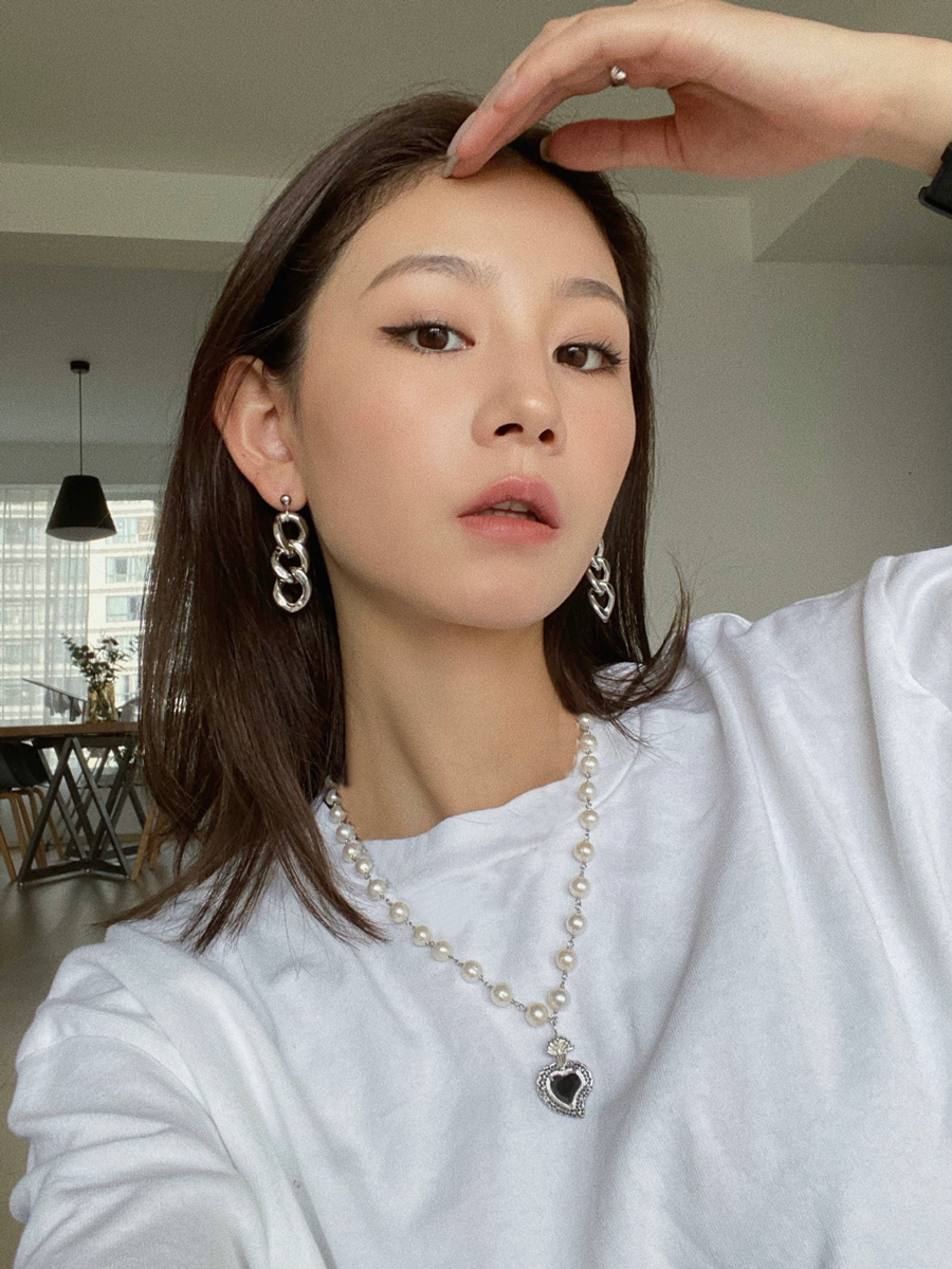 The necklines of some T-shirts are small after all, so wearing them like this naturally takes up the length of the neck. In order to avoid being bulky at this time, you can choose to embellished with a pearl necklace to increase the sense of space at the neck. It is so delicate and elegant, showing off A sense of wealth.