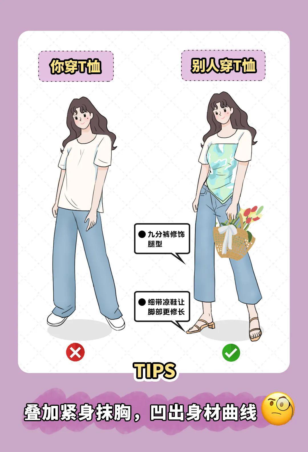 If you want to wear T-shirts that are unique and beautiful, you can also choose to layer suspenders or tube tops, which are also popular nowadays. Very good! Even girls who are meaty people can give it a try!
