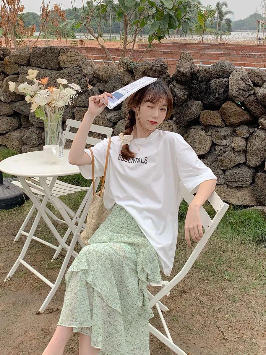 The minimalist style white T-shirt paired with a sweet and age-reducing floral skirt is full of summer atmosphere and youthful vitality. Wearing it in summer will not be boring, but it will relieve boredom! Okay , I will share here some tips on wearing summer T-shirts, I hope it can help my friends!