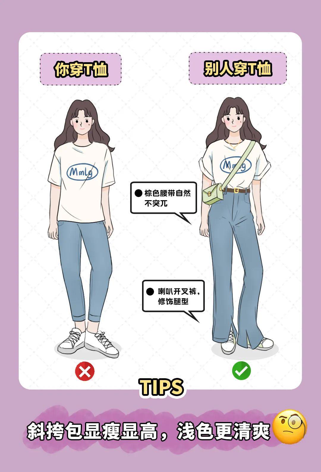 <span style="color ; If done properly, it can also help you look taller and have longer legs! Even if it is a loose or ordinary T-shirt, adding a diagonally divided shoulder strap bag can solve your problem.