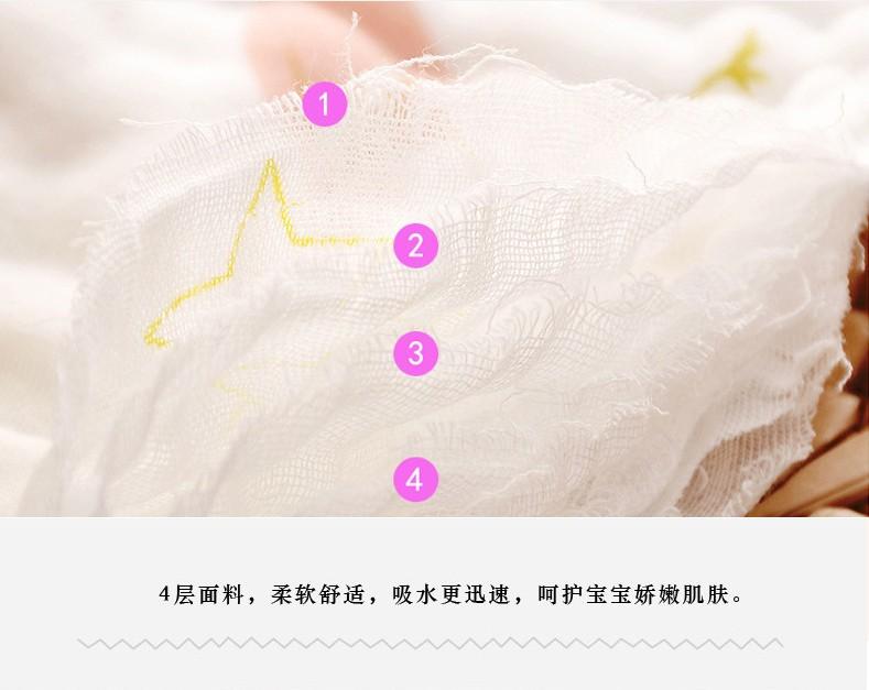 Three layers of gauze on the front and back. To put it simply, a saliva towel with 6 layers of gauze has a certain thickness. Thick and more absorbent, it is very suitable for use during the baby’s drooling and vomiting stage.