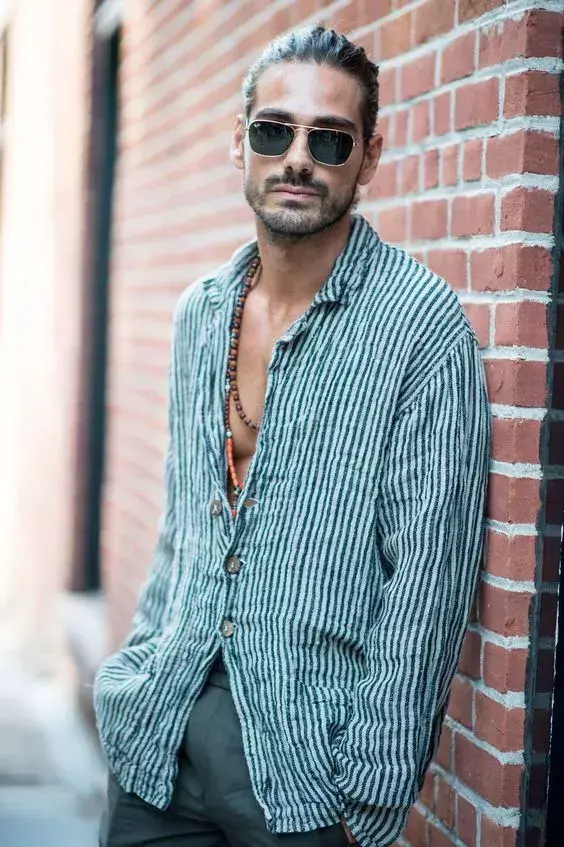 So, choosing the right style of linen shirt is a very critical step. There is also the three-quarter sleeve linen shirt below, which is not so out of style.