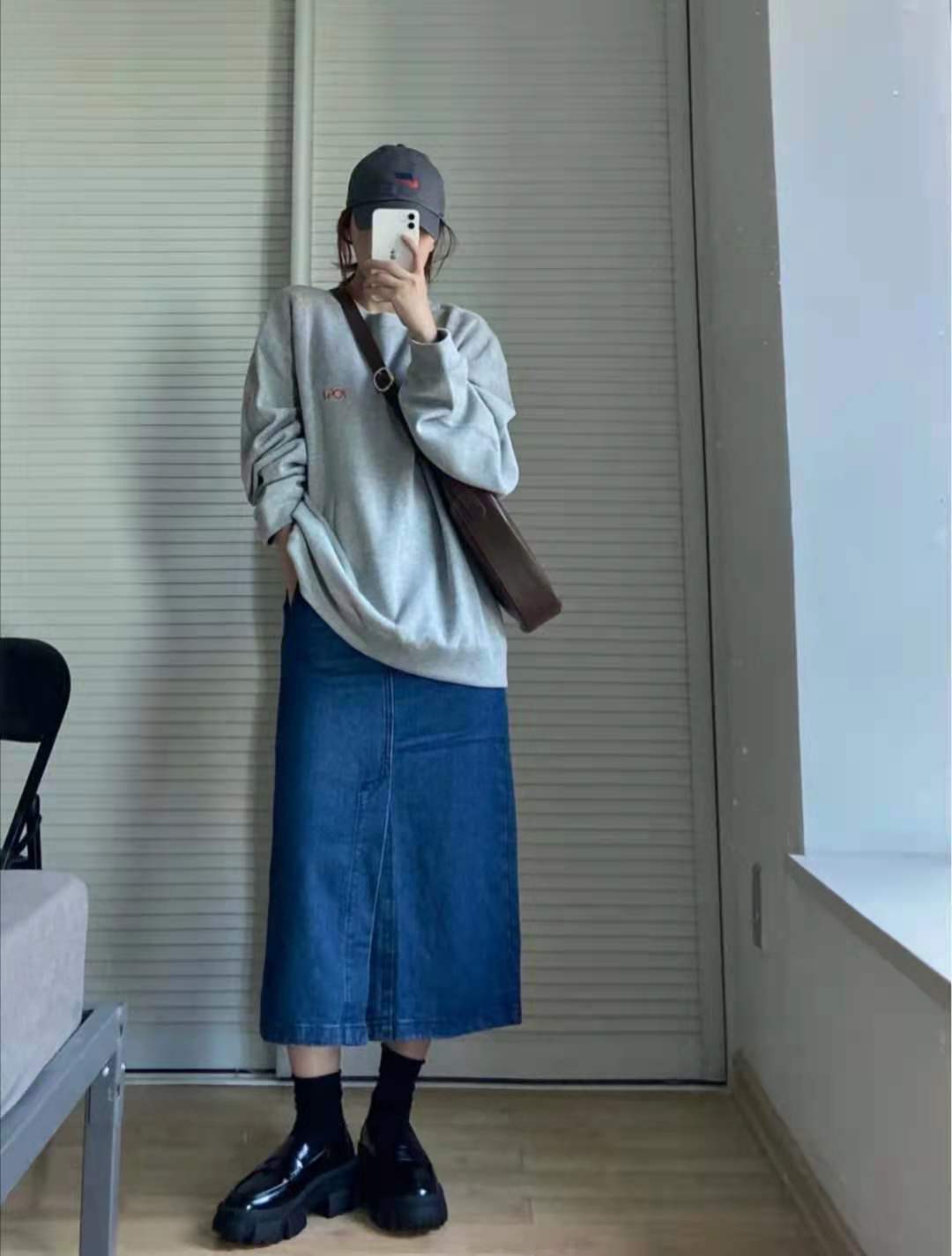 A black skirt is more gentle, a denim-like skirt is more tough, and a gray sweatshirt is more Wear a denim skirt, which is casual and has a good sense of design. You will look the brightest when you go out on the street.