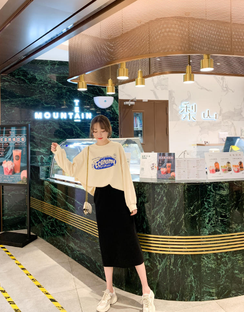 Pairing a sweatshirt with a long skirt is also a very popular trend recently, and it is more elegant than pants. It is soft and suitable for gentle sisters to wear. The simple style is more fashionable, unobtrusive but very fashionable.