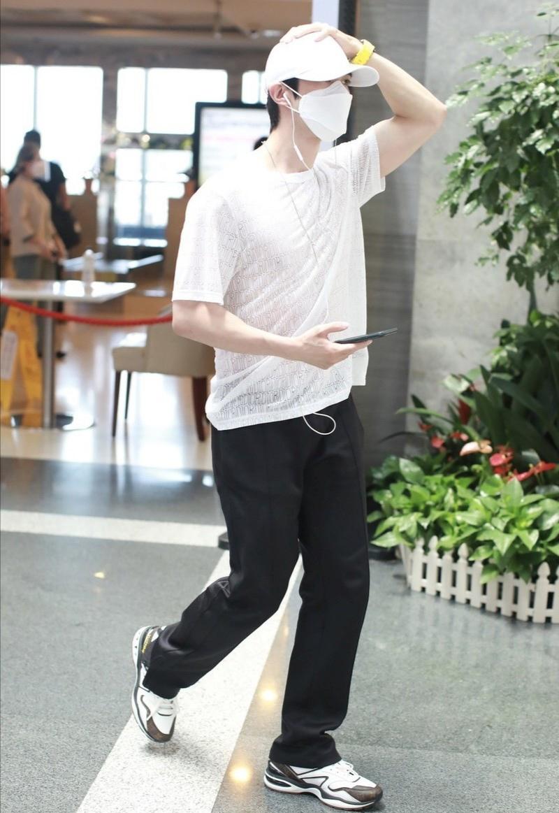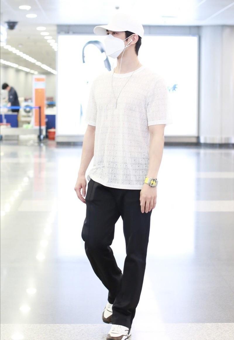 This short sleeve with hollow letters has dense hollow patterns, so you can vaguely see his muscle lines. It can be seen that Li Zhiting is still very self-disciplined in his daily life, and his fitness results are good. Many artists in the industry are very keen on fitness, not only to look better on camera, but also to have a healthy body.