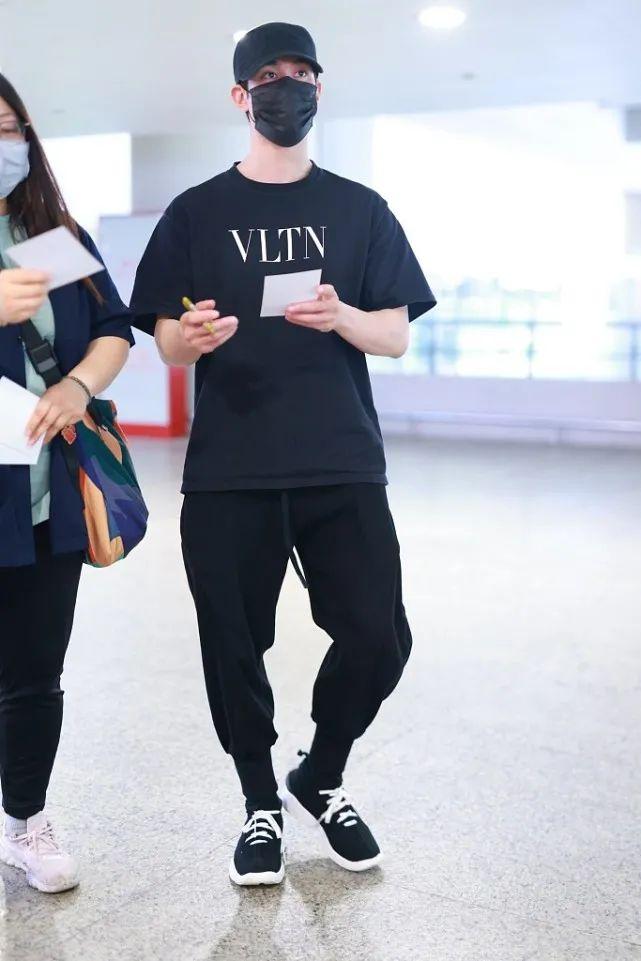 Straight casual trousers can also modify the body shape. As long as you do not choose a tight style, the average body shape can be controlled. Unified with a black T-shirt, the visual effect of this look becomes better, allowing Li Zhiting to create a long-legged style.