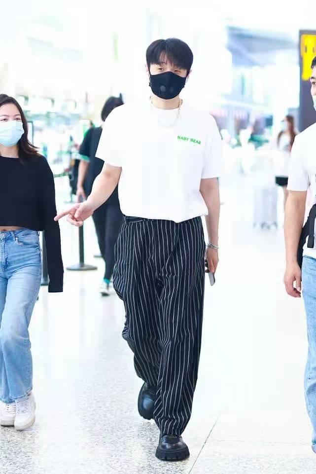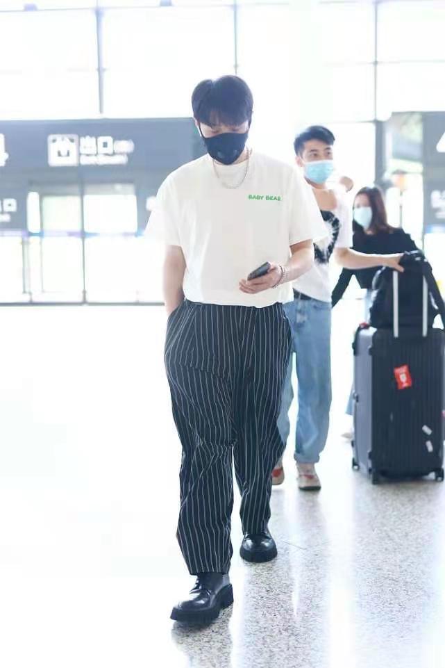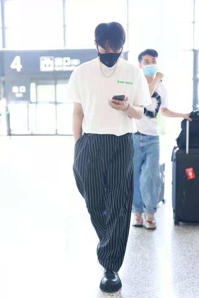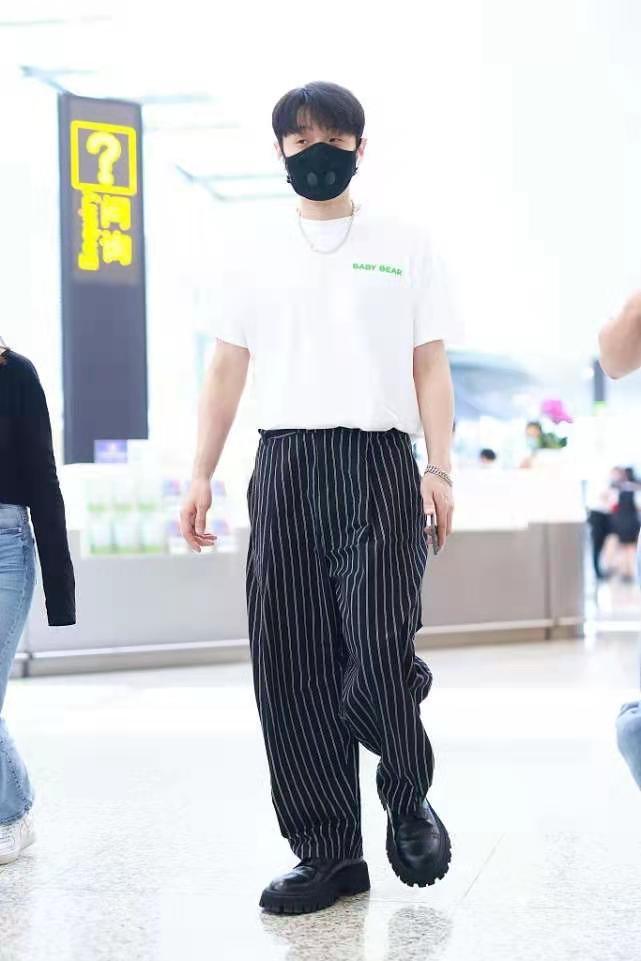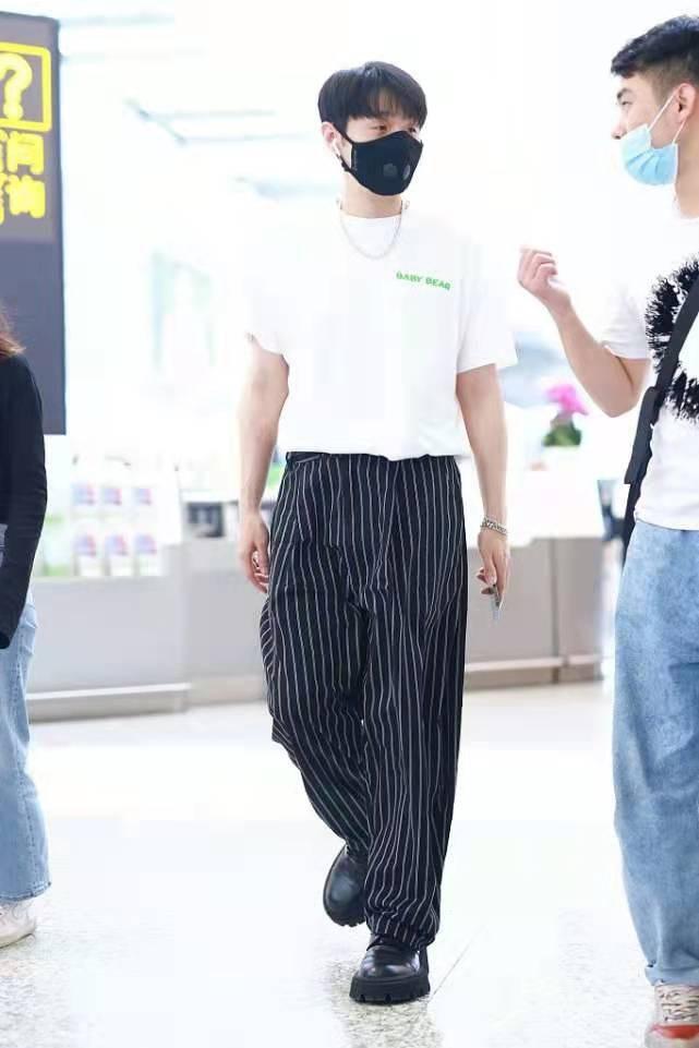 Of course, what makes the whole outfit even more exciting is also the texture choice of Li Ronghao’s trousers. Trousers decorated with vertical stripes can visually extend the body vertically, making the figure look slimmer. It also greatly relieves the dullness of solid colors. Men should quickly get the same style!