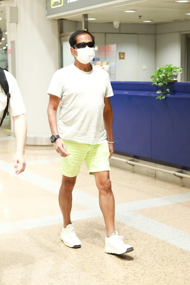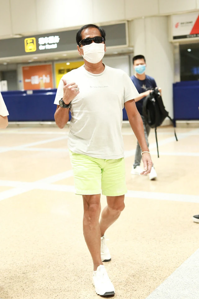 The 61-year-old seems to pursue comfort and simplicity in his style, which is also a manifestation of his fashion philosophy. When he appeared at the airport, he wore a simple T-shirt paired with fluorescent green shorts. His look was still very confident. Against the background of simple tones, the overall look was very grand.