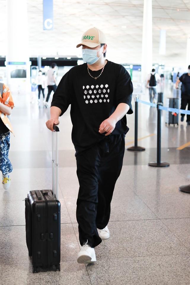 Shen Teng chose to wear all black overall, but still used white sneakers to increase the visual difference and create highlights to break the overall boring look. Black outfits add visual eye-catching points and make the whole look more attractive.