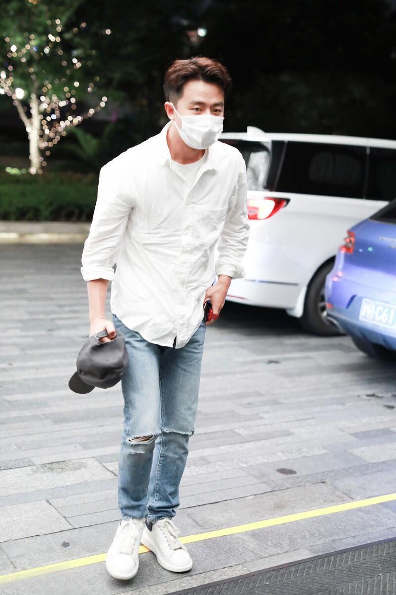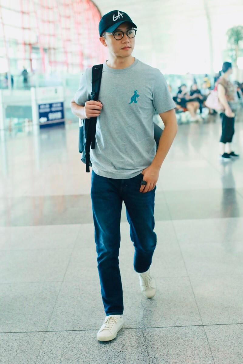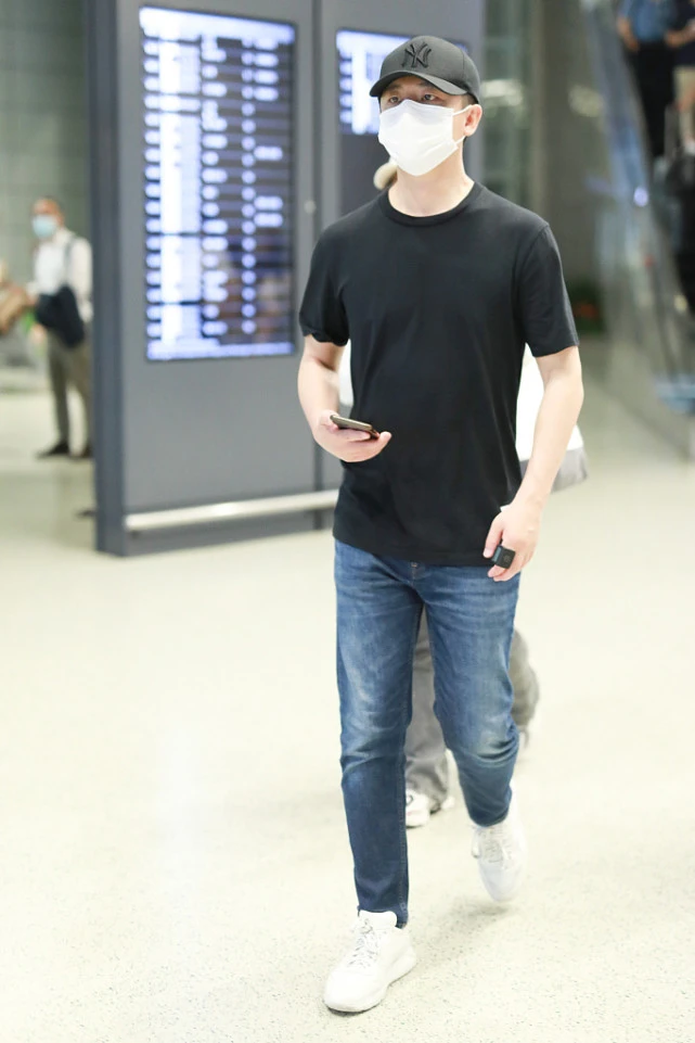 In addition to shirts, T-shirts also have a place in summer matching. As a fan of low-key dressing, Huang Xuan is naturally not far behind, but he wears jeans with the latest fashion trends.