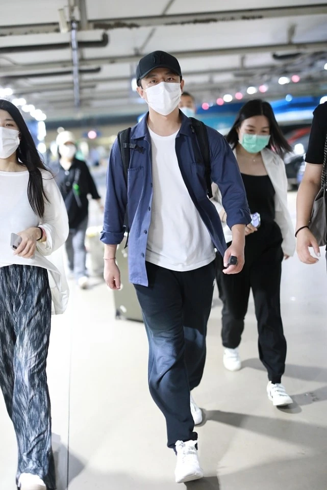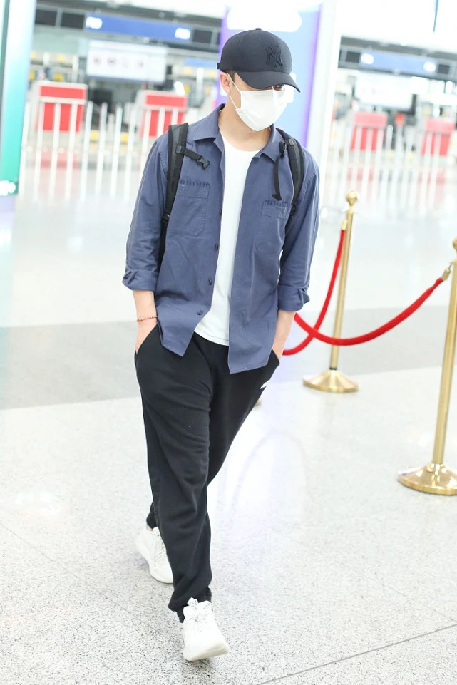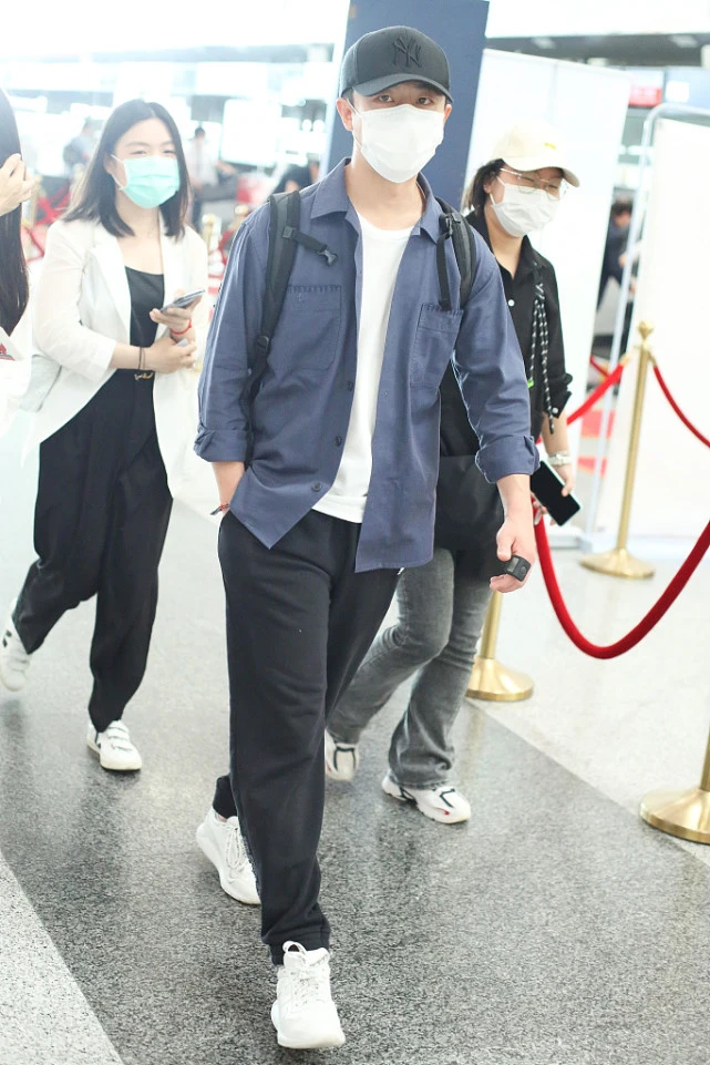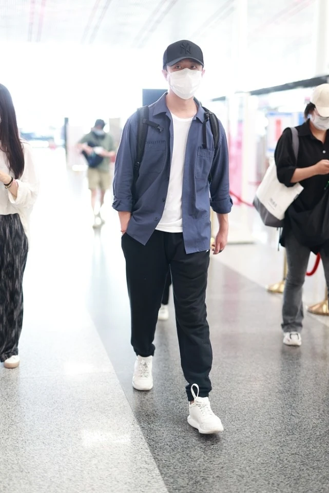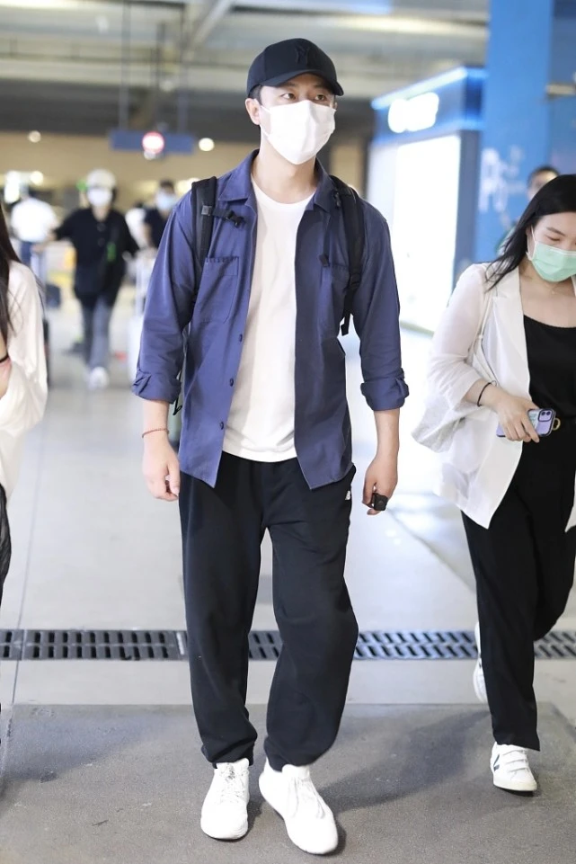 The combination of shirts and white can often have an age-reducing effect, and is also quite artistic. Huang Xuan chose black sports pants as his bottoms, and paired them with sports shoes to make the whole look more complete. The matching adds a bit of dynamism. Although this combination is not unique, it does add a bit of freshness and handsomeness, which is quite suitable for summer.