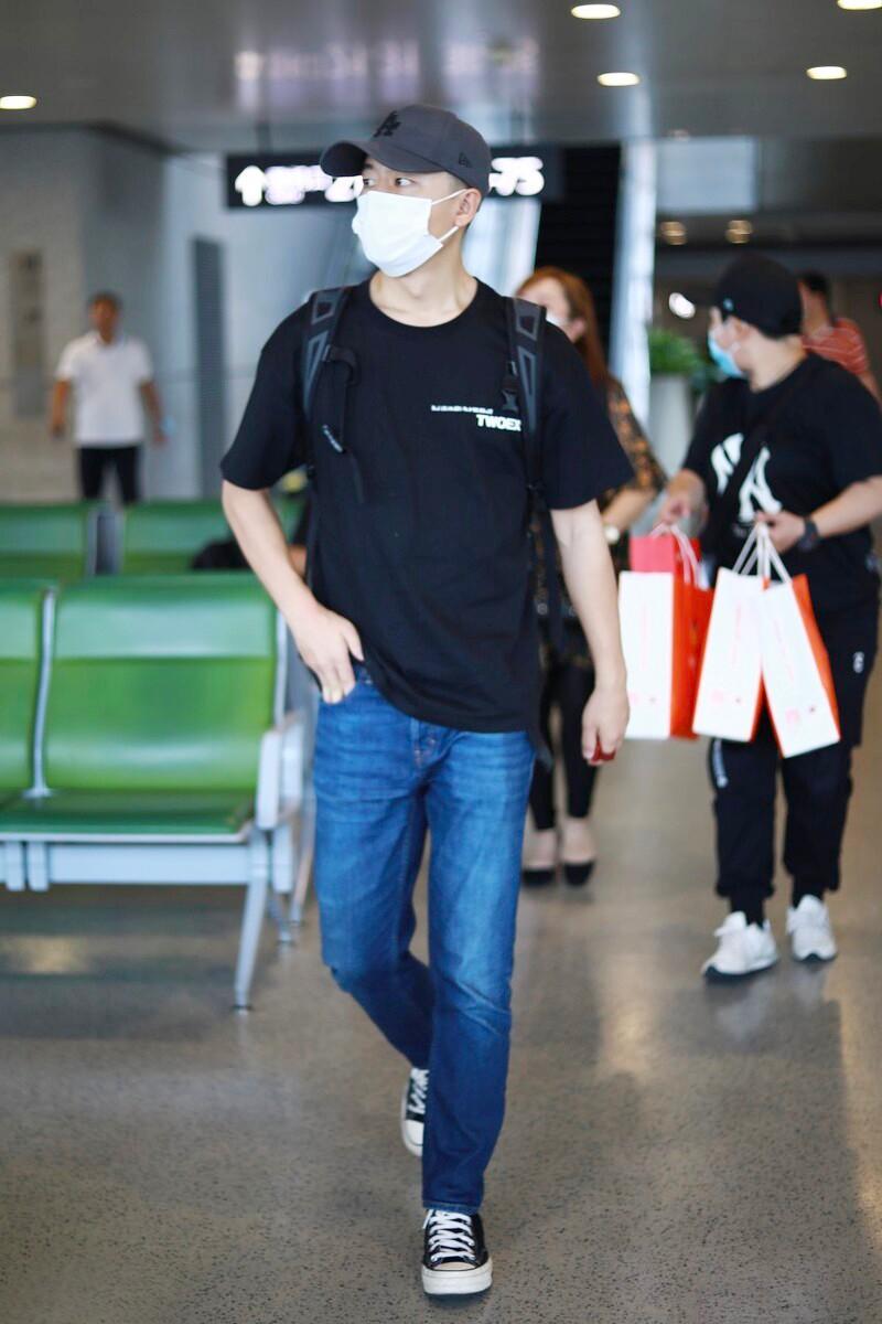 In the hot summer, many people avoid dark colors, but Huang Xuan chose a pure black T-shirt and dark jeans. Although the overall tone is similar, It is much darker than the mainly white shirts, but it has a more masculine atmosphere. The well-fitting T-shirt also makes the figure more burly. If you want to wear a good figure without being too high-profile, you might as well give it a try!