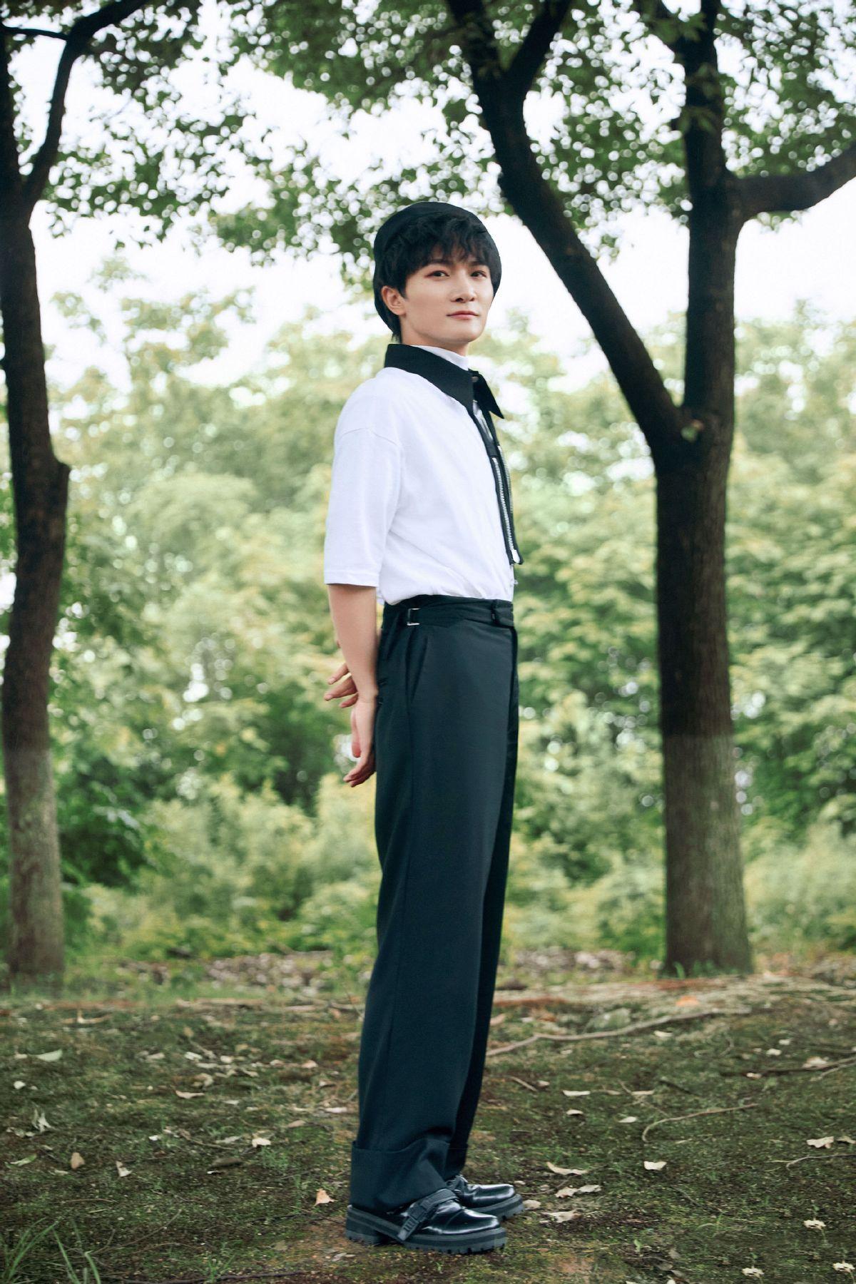 Since the T-shirt has a looser fit, when choosing bottoms, for a short man like Zhou Shen, choosing loose trousers will greatly reduce his height. , and bring a sense of expansion, so slim trousers can make the overall line more smooth, and also add a bit of neatness and ability. When worn with a high waist, it can also lengthen the proportions of the legs.