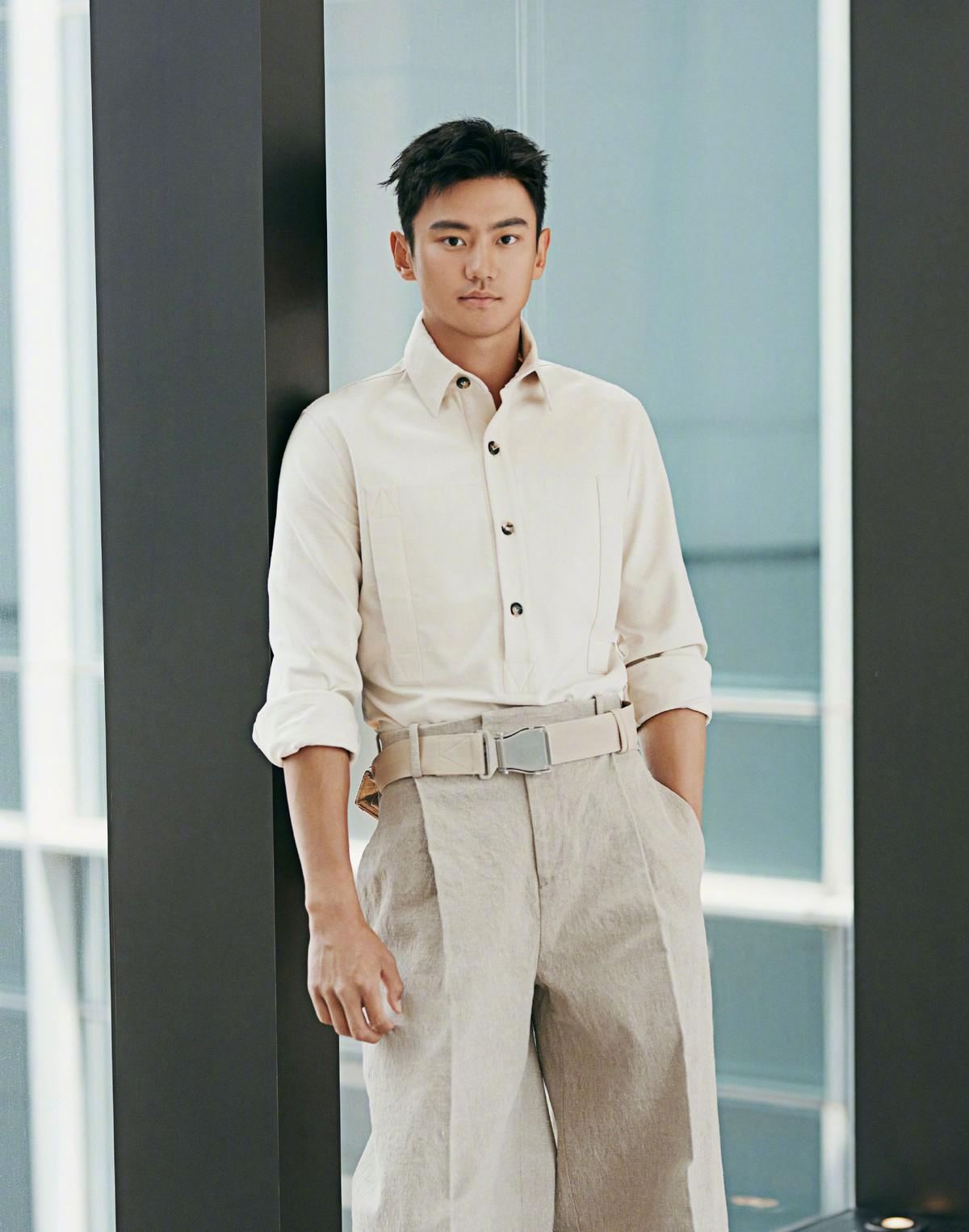 Elegant and gentle Ning Zetao can easily hold on to his boyish-style outfits, as well as the slightly domineering cool style. A decent shirt paired with rolled sleeves gives a casual feel, and the loose bottoms worn with a high waist add a bit of extra flair. Neat and capable, the color scheme is simple but quite fashionable, and the fashion effect is indeed extraordinary.