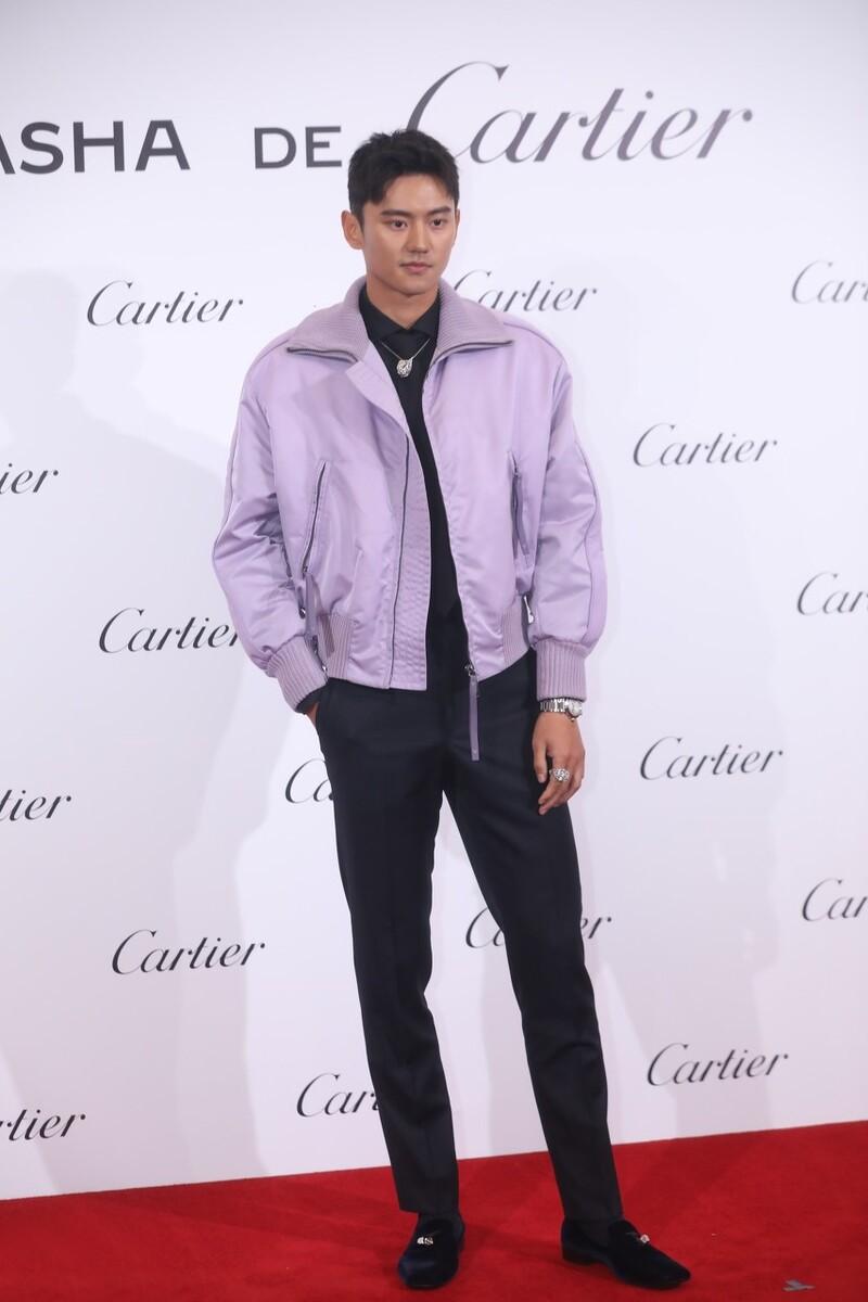 Pairing sports-style items with novel colors will make the overall look more eye-catching. At the same time, mixing and matching other style items will also make it more fashionable. Ning Zetao chose a light purple sports jacket that is fresh and handsome, and it does not look out of place even when paired with suit pants.