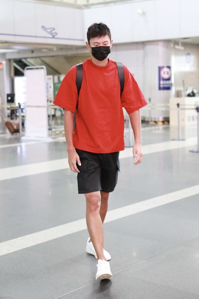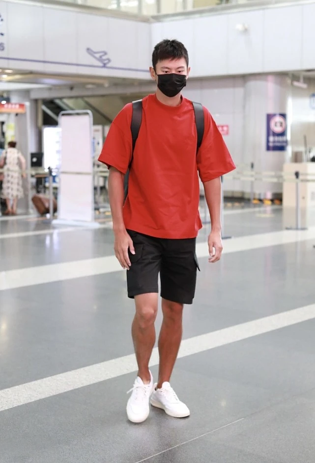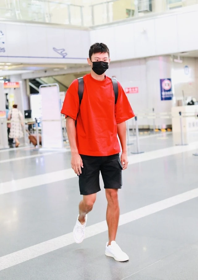 Ning Zetao, who is 191cm tall, is like this. When he appeared at the airport, he chose a bright red T-shirt that was eye-catching. Although the combination is very simple, due to his height, With well-proportioned body lines, the whole person looks quite outstanding. The simple shape adds a bit of freshness and handsomeness, and the whole person looks quite handsome.