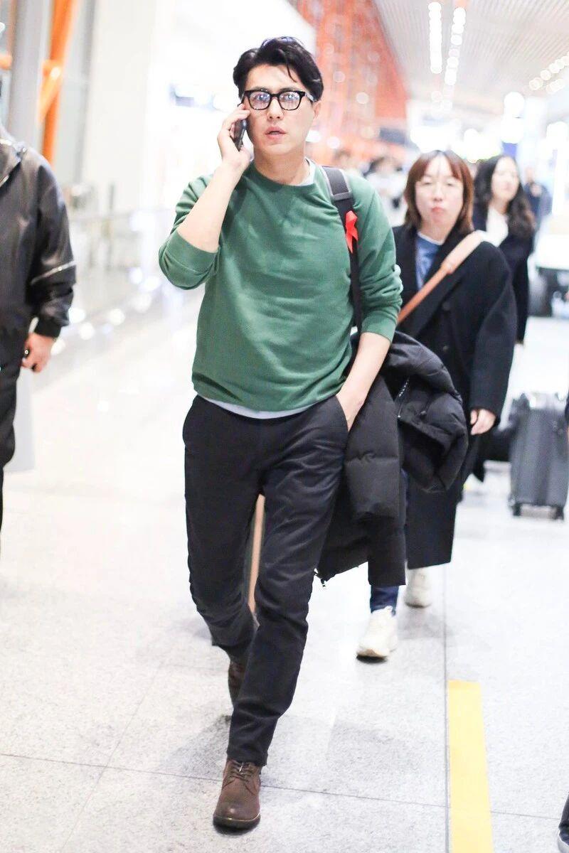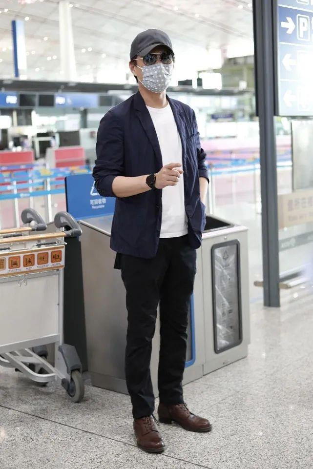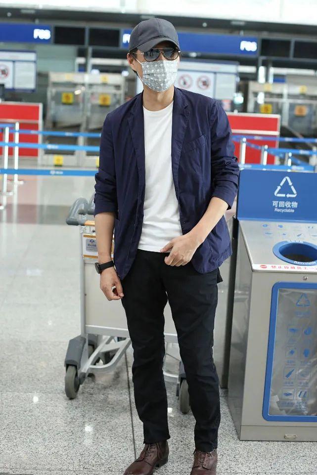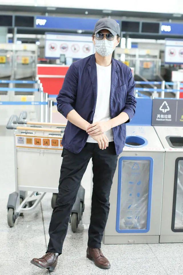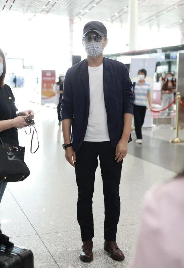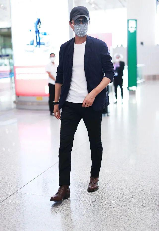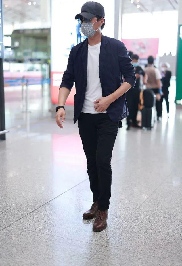 Jin Dong paired it with a pair of black slim-fitting casual pants this time, and the style unintentionally showed off his good figure. Although he is about to turn 45, middle-aged Jin Dong still does a good job in body management. Well done. When choosing a slim-fitting version of trousers, the length cannot be ignored. Many styles have too many pleats because the trousers are too long, so the shape does not look neat enough.