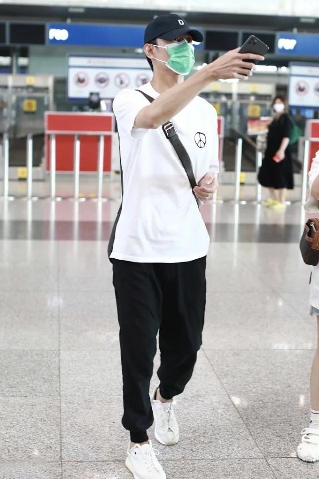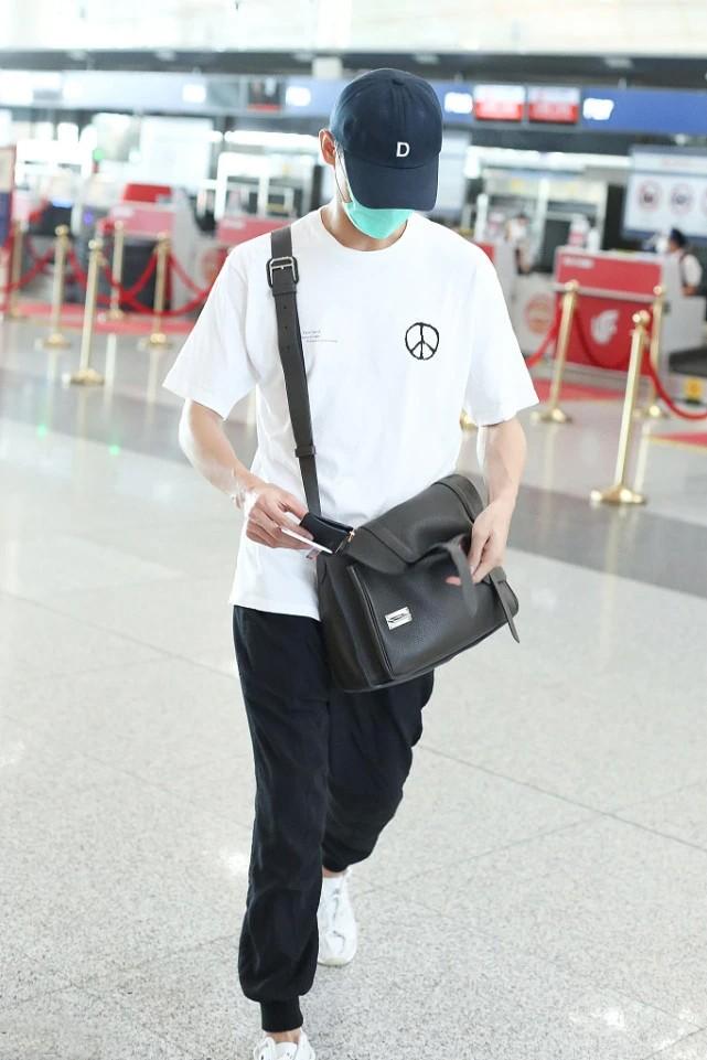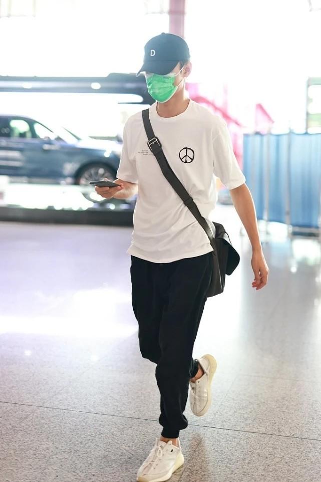 Of course, many people think that as an artist, even if you choose the simplest white T-shirt, you can look fashionable with your temperament. In fact, Wang Kai has also made template accessories for amateurs. . The addition of a crossbody bag is simple and low-key, which is not only very practical, but also makes the whole outfit more layered. The baseball cap greatly increases youthful vitality and makes the whole outfit very boyish.