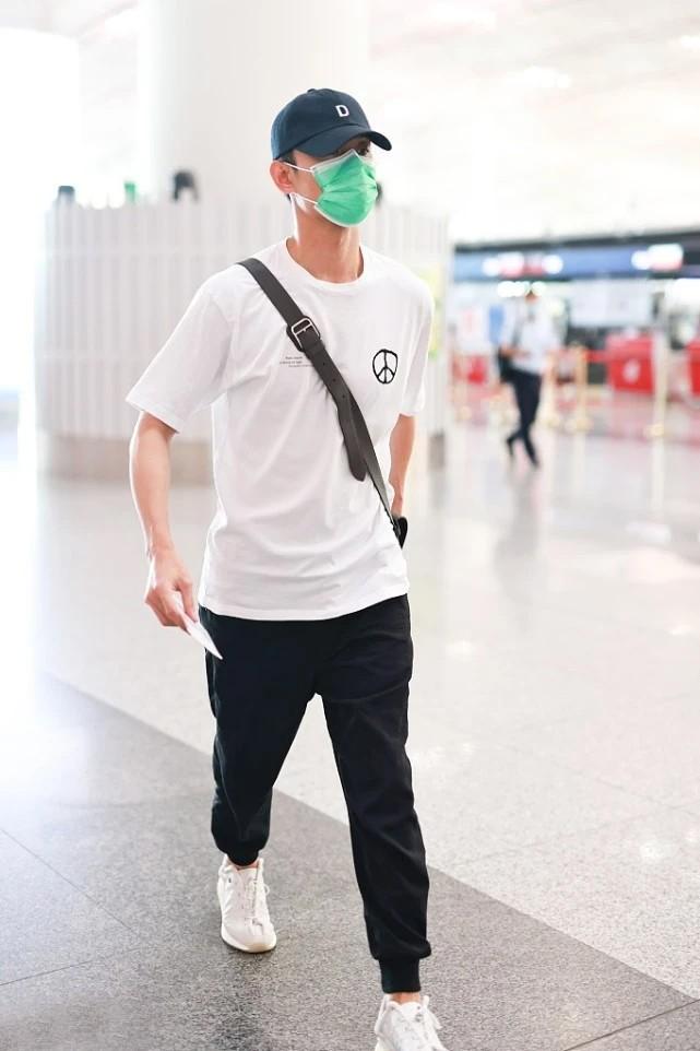 This time Wang Kai made a low-key appearance at the airport. He chose the simplest way of dressing. The white T-shirt that can be seen everywhere in daily life matches the sports style. Full leggings, simple and elegant yet still youthful and energetic, and paired with a baseball cap to add a trendy and cool vibe. Men over the age of thirty can use Wang Kai’s outfit as a template to easily create a casual and age-reducing effect.