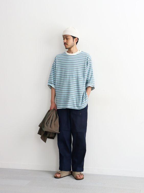 When men wear summer outfits, their ideas are different from those of women. A slimmer T-shirt will weigh you down and make it impossible to achieve a sense of fashion as a whole. And in such a sultry season, of course the loose version is more comfortable.