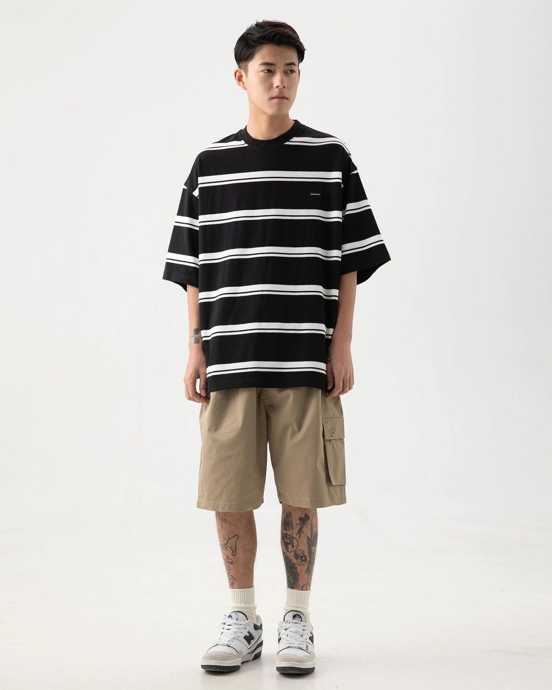 Equivalent to those tight-fitting items, this horizontal stripe T-shirt actually works better! The length is quite long, and it has a strong heat dissipation effect when worn in summer. I like to wear loose pants.