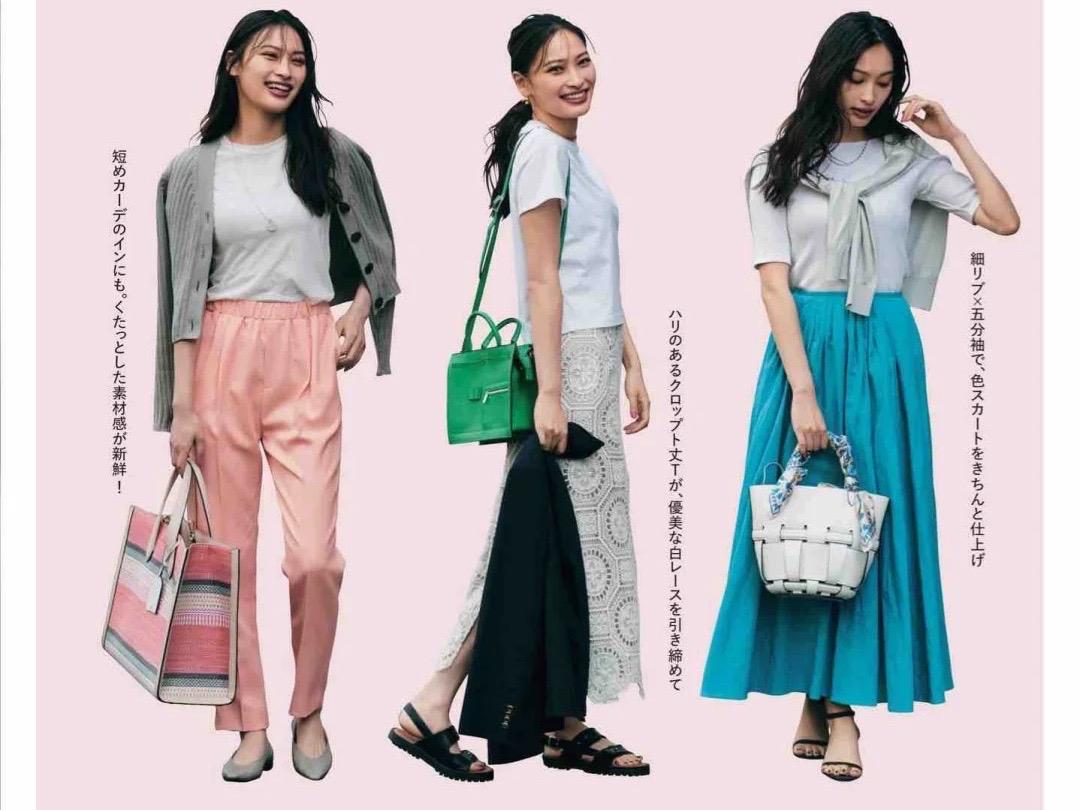 In daily wear, a white T-shirt is a basic item. The color matching of the bottoms is also more fashionable and advanced. For example, matching it with a red skirt is also a hot and eye-catching style.