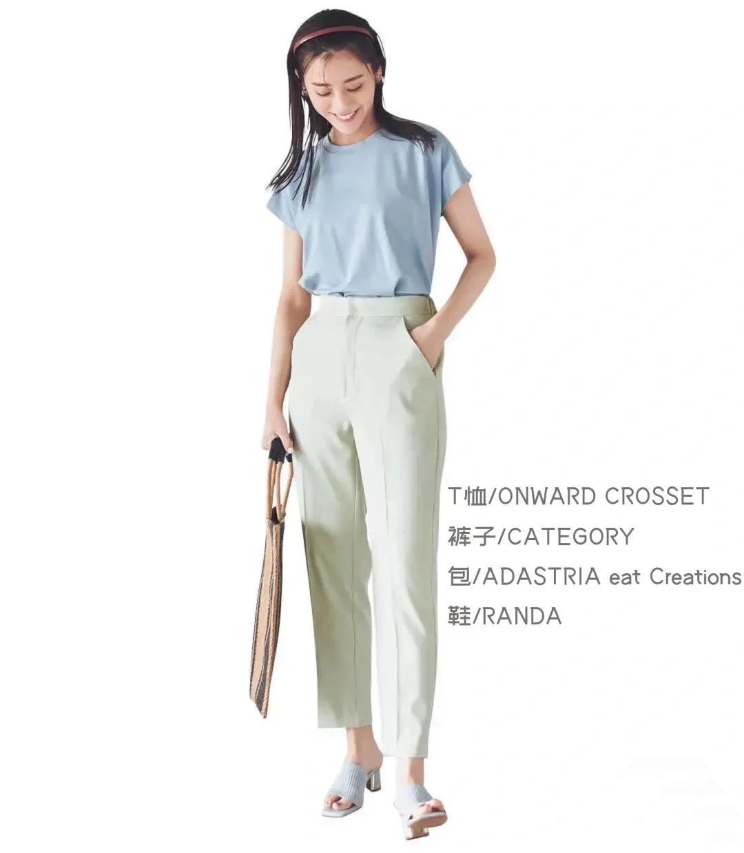 I chose a matching color here. In fact, the haze blue T-shirt and light green trousers are also a very refreshing combination. The combination of ice cream colors gives people a particularly refreshing and sophisticated beauty.
