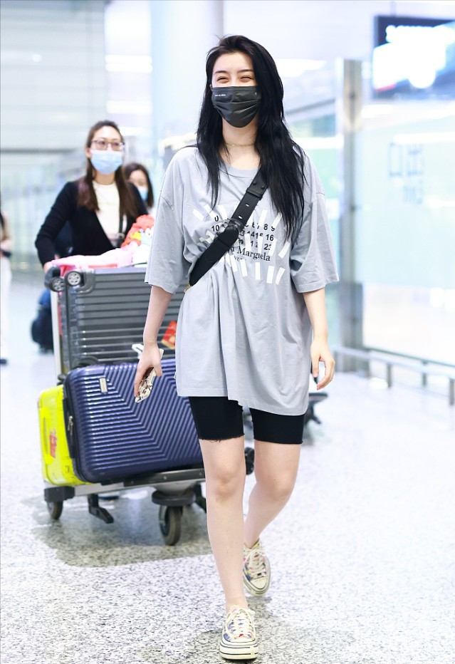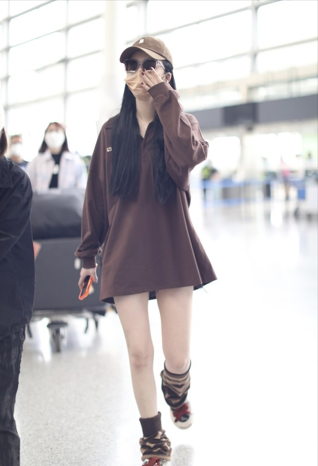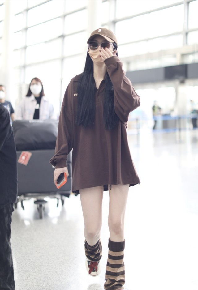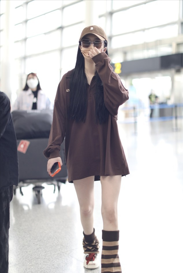 Zhao Xiaotang dresses very uniquely. She wears a Polo shirt as a skirt and pairs it with piles of socks to show her girlish liveliness. Zhao Xiaotang is thin and petite, but she prefers plus-size clothing. Polo skirts paired with piles of socks are quite individual.