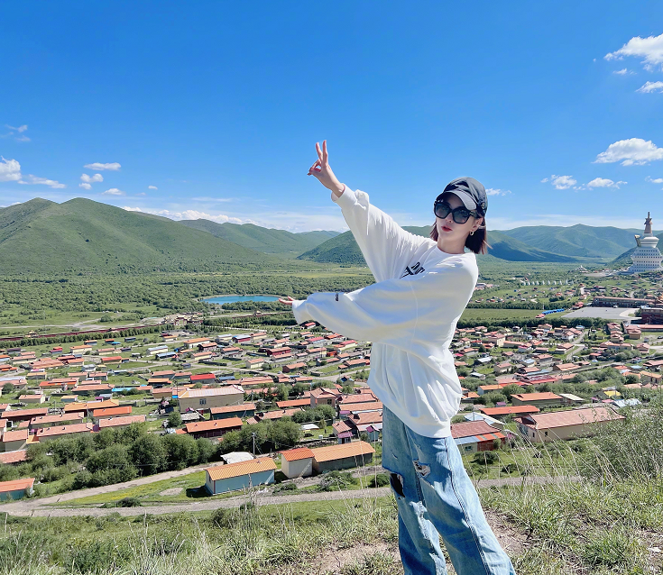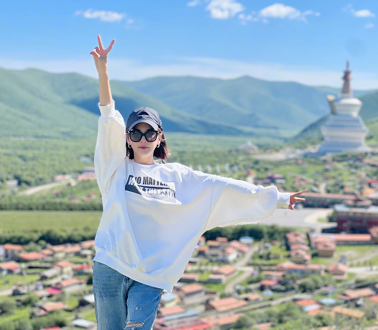 Zhang Yuqi’s tourist photos are very beautiful. She wears skirts and sweaters very sweetly, and her figure looks slimmer.