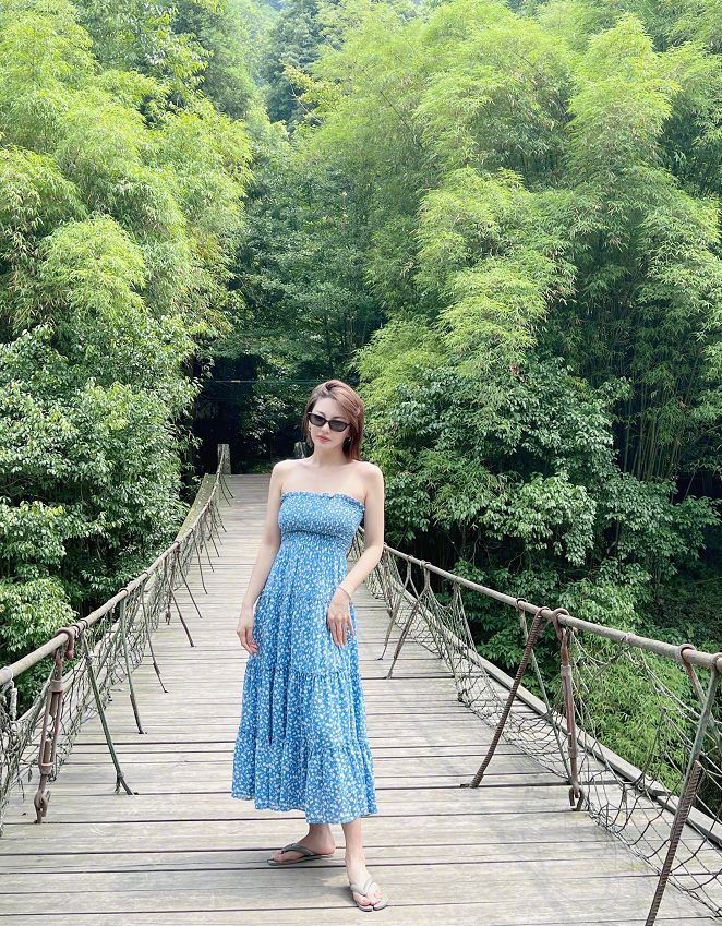 The tube top floral dress has a particularly direct figure-revealing effect. The tube top design reveals the delicacy of the shoulders and arms, and the collarbone shape is obvious. It increases the appeal of the image and also shows the sweet girly charm.