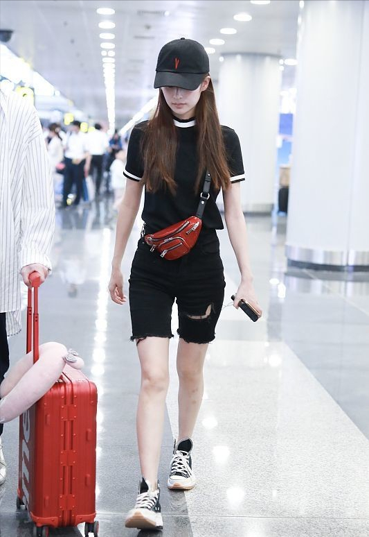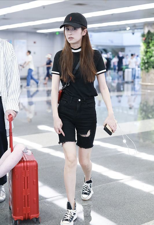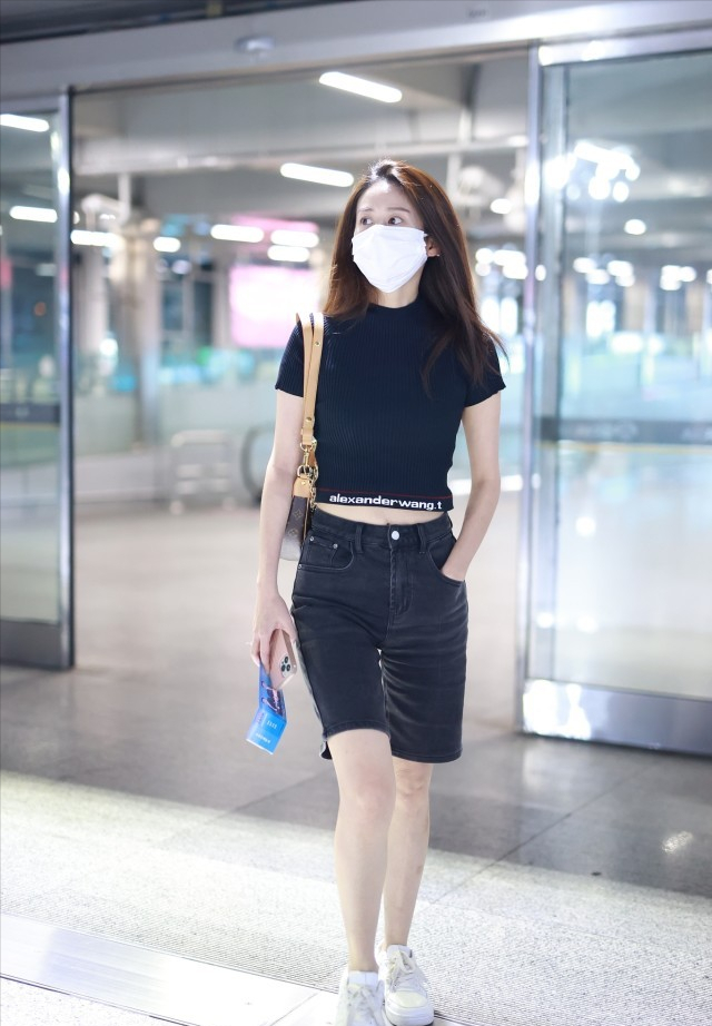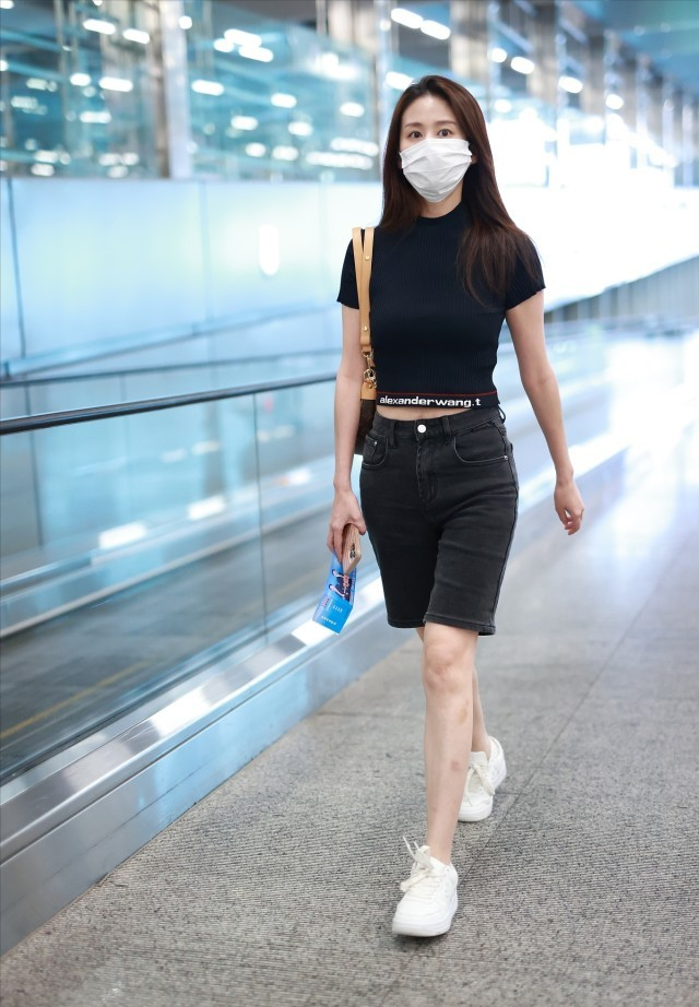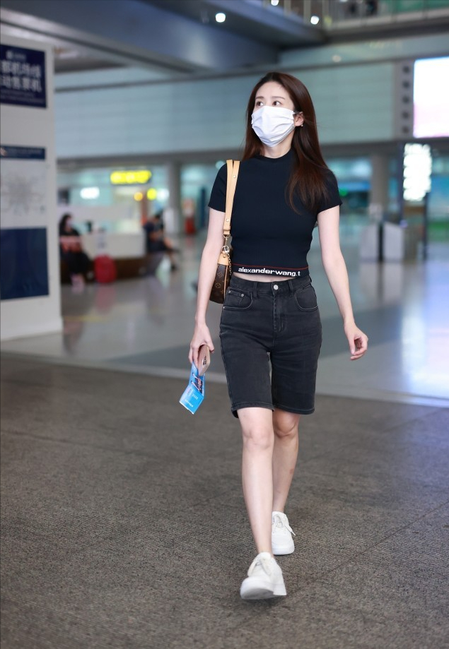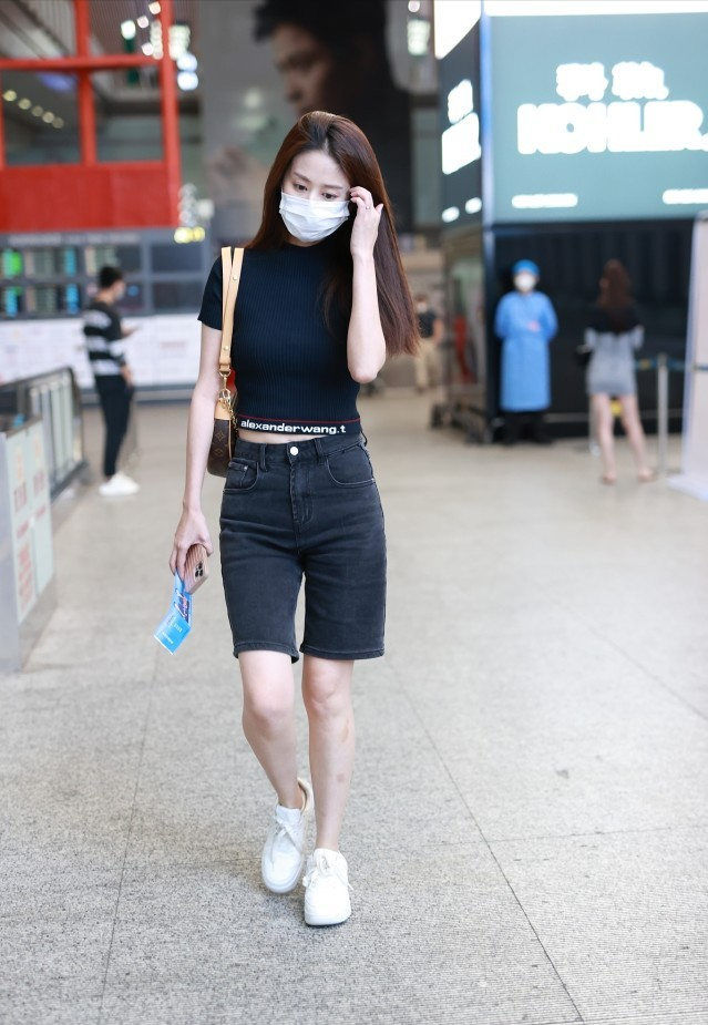 This type of T-shirt has a stronger effect on optimizing the figure. It can be paired with denim cycling pants for daily casual travel, which can improve the casual atmosphere and wearing quality. Many female celebrities like to wear T-shirts with cycling pants, and Yinger is like this.
