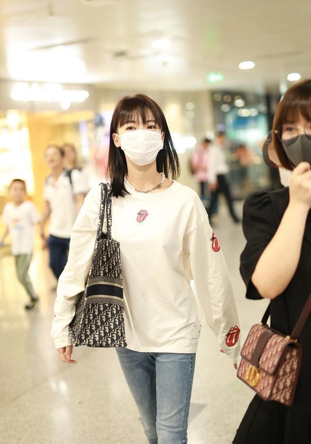Although some places are in high temperature mode now, most places have still entered the Beginning of Autumn among the 24 solar terms. Although many people still choose short sleeves or skirts most of the time. But the long-sleeved T-shirt, a single item in early autumn, has also become a must-have fashion item for more and more people. Long-sleeved T-shirts not only provide a good concave shape in this season when the weather alternates between cold and warm, but they can also be layered with various short-sleeved shirts for a very fashionable effect. Long-sleeved T-shirts are not only loved by many fashion bloggers and trendsetters, but even celebrities cannot resist its charm. Recently, little girl Wu Jinyan wore a mask while walking to the airport. She wore a white long-sleeved T-shirt with jeans, and her bangs showed off her age.