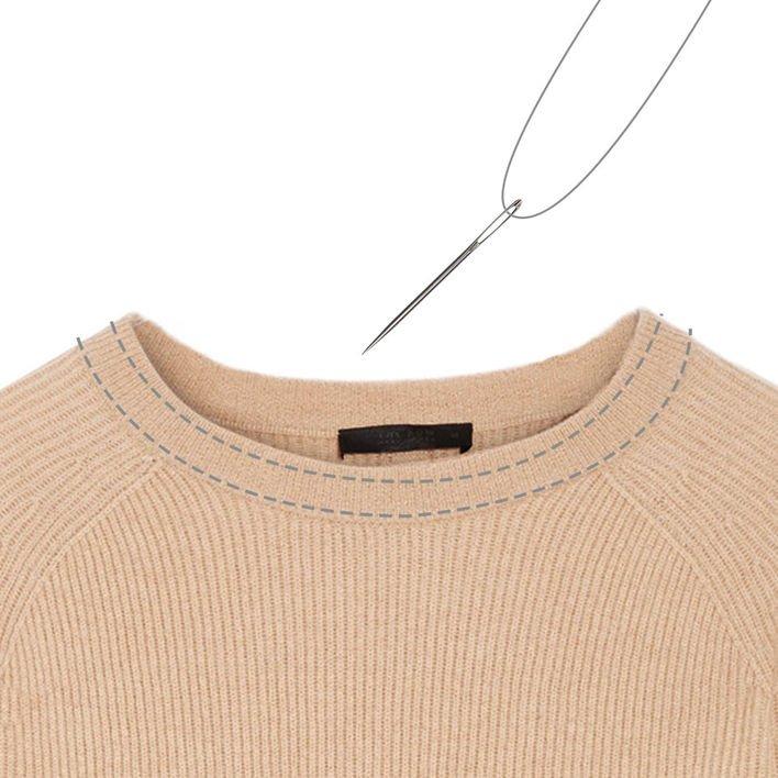 If the quick method cannot solve the baggy situation, there is another way to solve it! ! Prepare a needle and thread and sew in the rib space of the collar of the garment. The ribbing is composed of a convex and concave weave. The concave part is passed through the back of the needle, and then the convex part is pushed out to tighten the neckline.