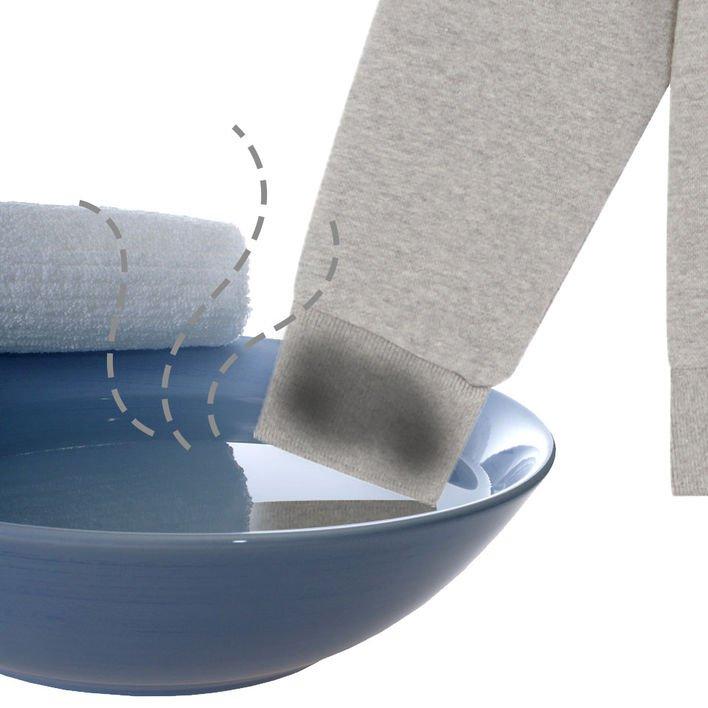 Ribbing is usually the weaving method of collars or cuffs. The spacing between ribs becomes larger, resulting in loosening of the shape. Before processing, gently pull it apart along the straight grain, and then remove the loose parts of the clothing. Soak in water for about a minute.